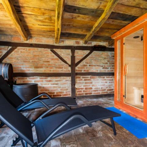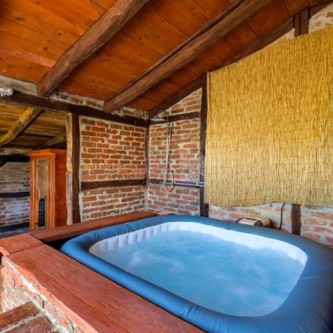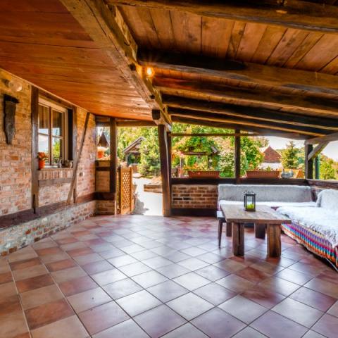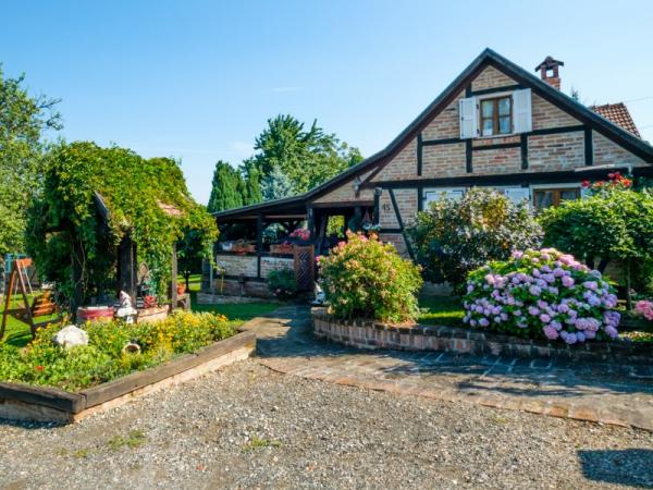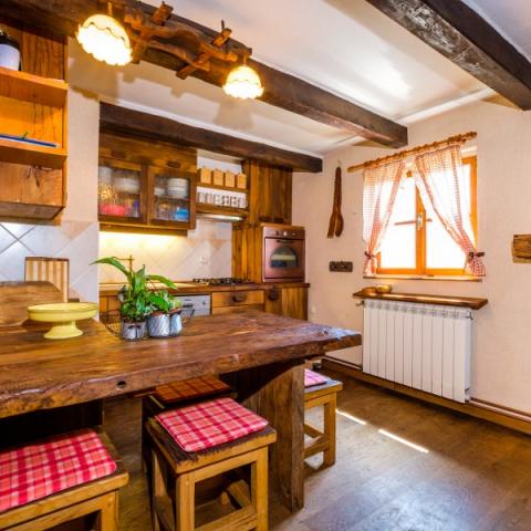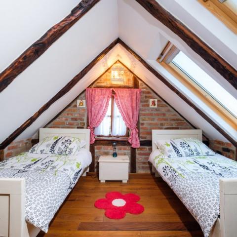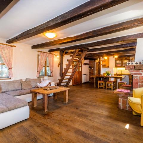 Huset er bygget af gammel egetræ og rød mursten, er restaureret med masser af kærlighed og er nu en perfekt kombination af tradition og komfort. På loftet er der et åbent rum med en dobbeltseng og et værelse med to mindre senge. Synlige bjælker og mursten giver en særlig charme. Den rummelige stueetagen består af et køkken, stue, 1 soveværelse og fælles badeværelse. I midten af boligen er der en stor pejs foran som er en vinkelseng, der kan tjene som 2 ekstra senge. Her er et tv og projektor. Et lille håndlavet køkken indeholder alt hvad du måske har brug for: en kogeplade, en skål, en opvaskemaskine, en kedel og bestik, skåle og gryder. Nogle forsyninger som salt, peber, mel, ris, olie ... vil altid byde dig velkommen. Bag soveværelset er en dobbeltseng og et fælles badeværelse med brusekabine, vaskemaskine og tørretumbler. Forbundet med huset er der en rummelig terrasse med et stort bord, bænke og grillet grill. Rummelig have, gynger, lille frugthave er kun nogle af de ydre indhold.