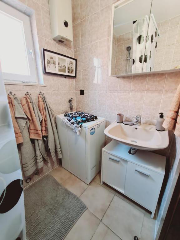 Smuk lejlighed med havudsigt. Udsigten strækker sig til Marjan Park (Split) og Kaštelanci-bugten. Et ideelt, fredeligt og afslappende sted at slappe af. Anlægget er placeret midt på Čiovo-halvøen, hvilket gør det 8 km fra centrum af Trogir (ca. en halv time til fods). Anlægget er udstyret med basale fornødenheder til et ophold, en parkeringsplads i garage og en stor terrasse til at tilbringe en hyggelig tid udendørs. Stedet er forbundet med bus og båd til alle de attraktioner, du ønsker at se.