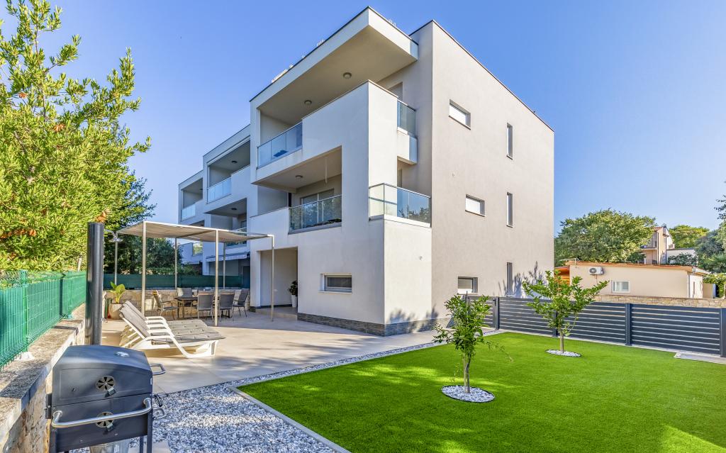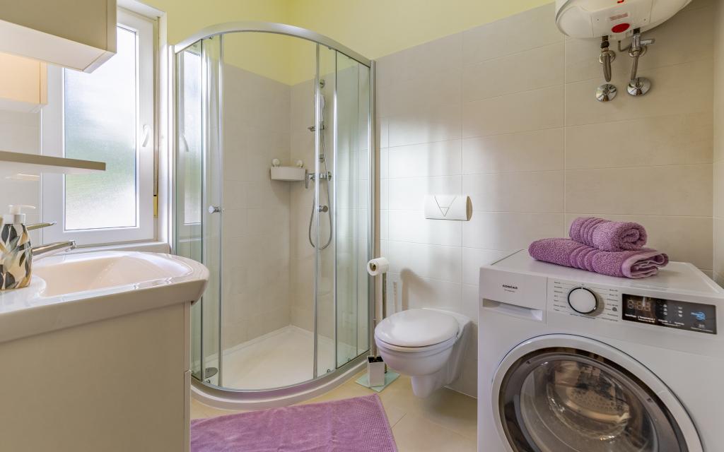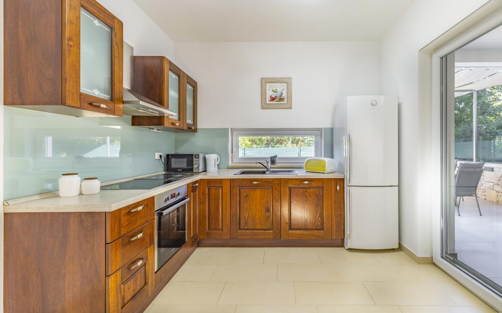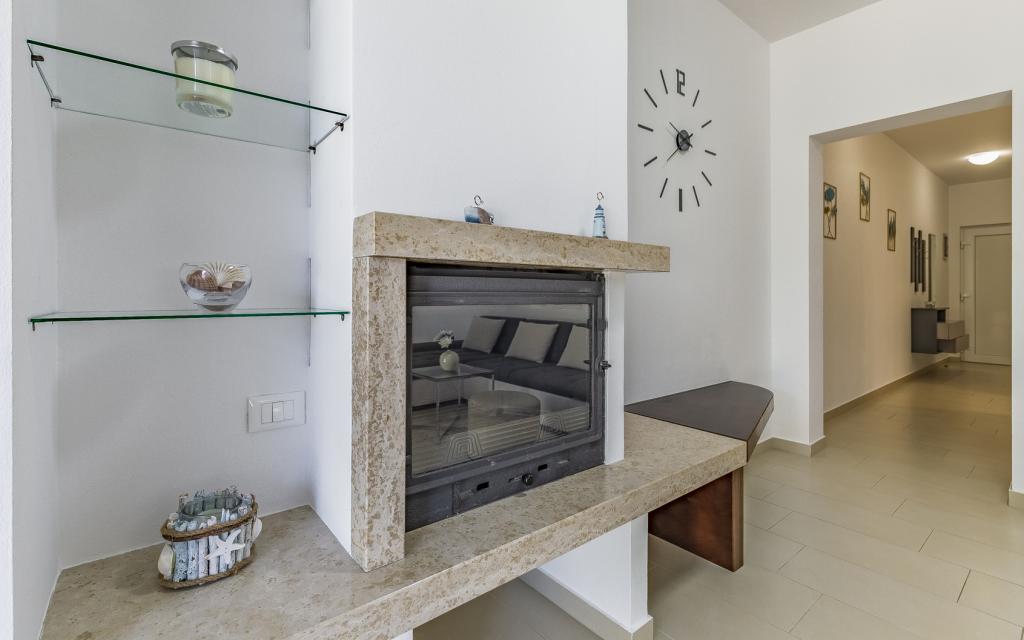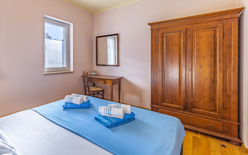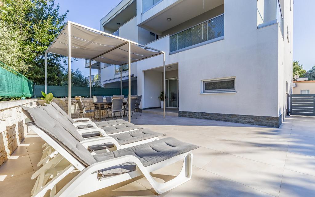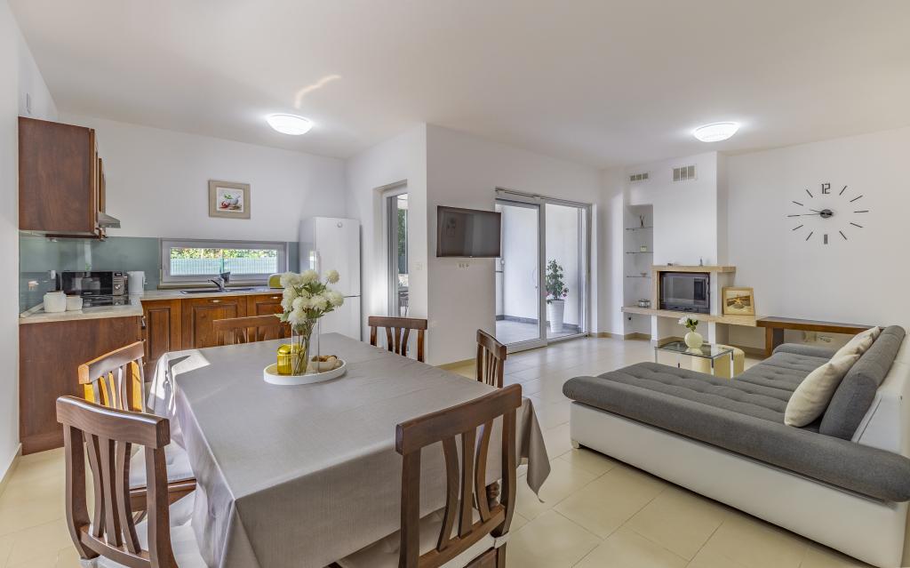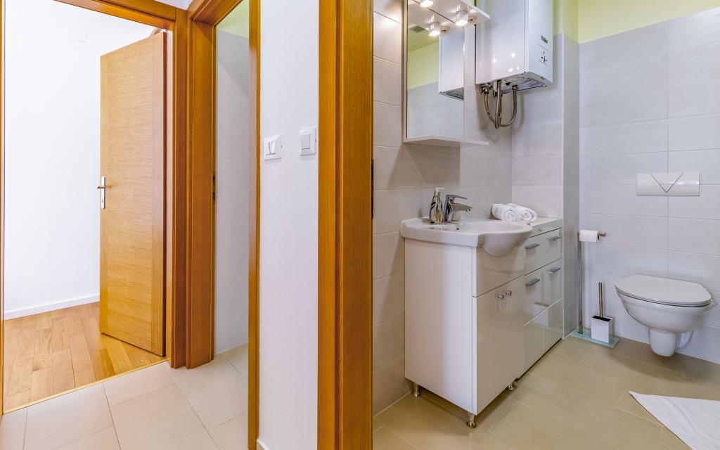 Fuldt møbleret lejlighed (80 m2) i en fremragende beliggenhed i en rolig del af Banjol, kun 5 minutters (300 m) gang fra de smukkeste strande i området. Lejligheden ligger i stueetagen af en boligbygning med kun tre lejligheder. Lejligheden har en privat have (100 m2) med terrasse, bord, liggestole, udendørs bruser og grill, hvilket giver mulighed for behageligt socialt samvær med masser af privatliv og er især velegnet til børnefamilier. Der er en privat parkeringsplads ved siden af bygningen med direkte adgang til haven og terrassen. Haven blev fuldstændig renoveret i 2024. Hele bygningen er beskyttet af et sikkerhedshegn (kortadgang). Lejligheden har 2 soveværelser med dobbeltsenge, 2 badeværelser med toilet og bruser, en rummelig stue med en udtrækkelig sofa, spisestue og køkken. Lejligheden har aircondition og er opvarmet om vinteren (gulvvarme) og har en indendørs pejs, så den også er velegnet til ophold i de koldere efterårs- og vintermåneder. I umiddelbar nærhed af lejligheden er der adskillige barer og restauranter samt dekorerede butikker.