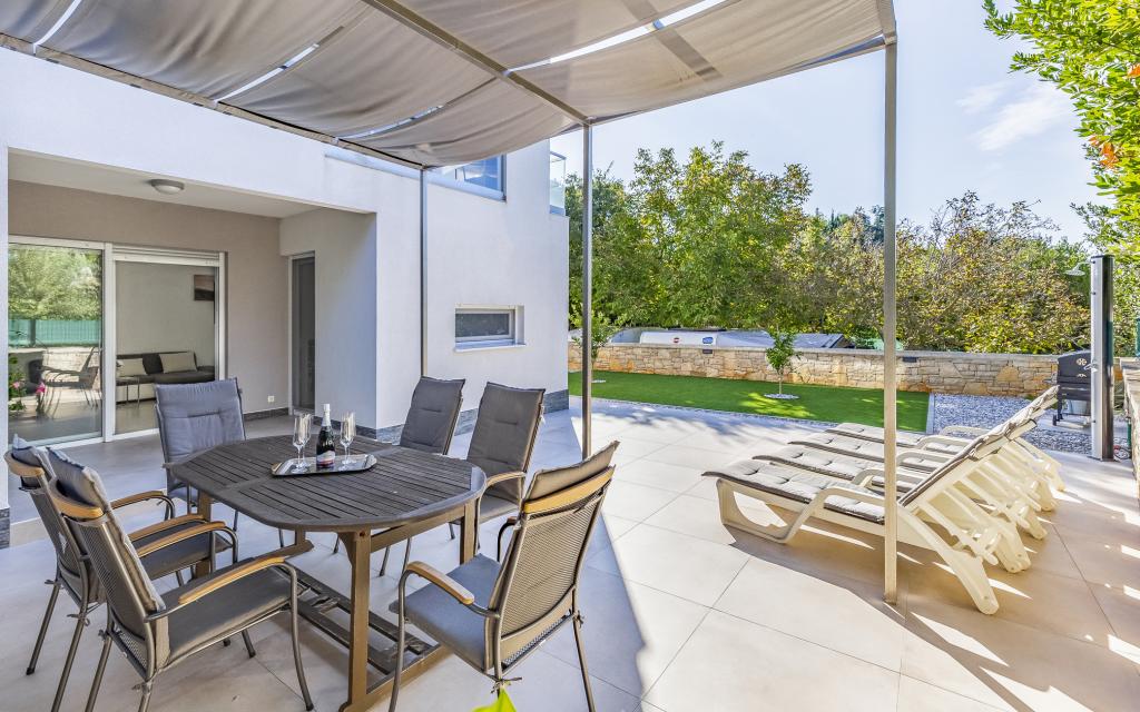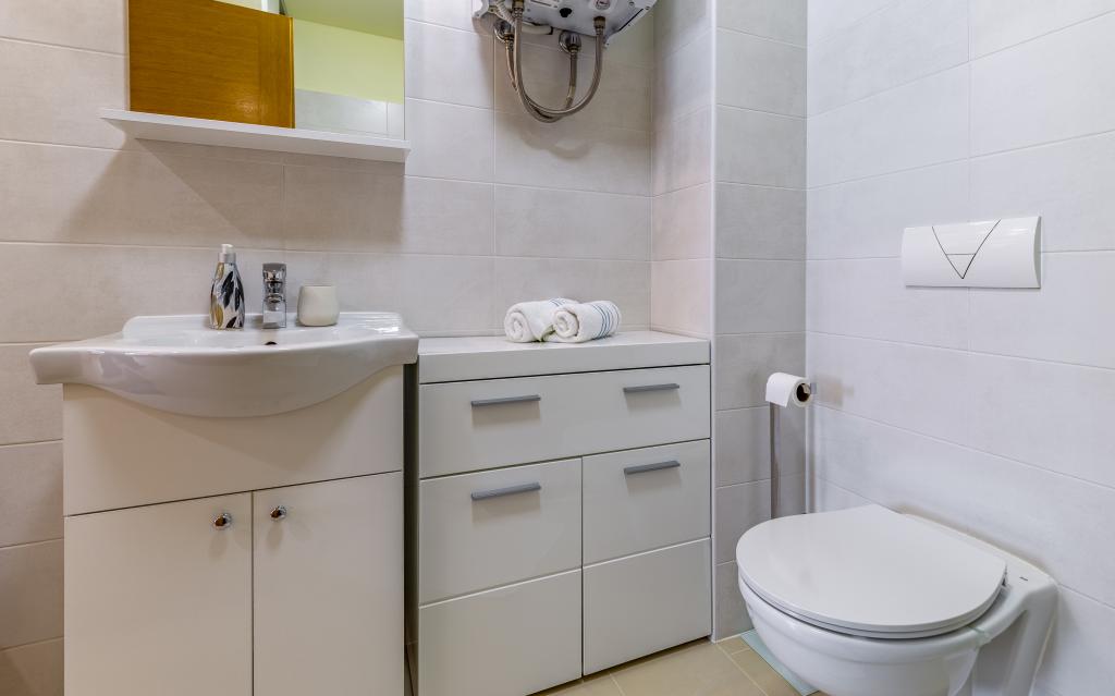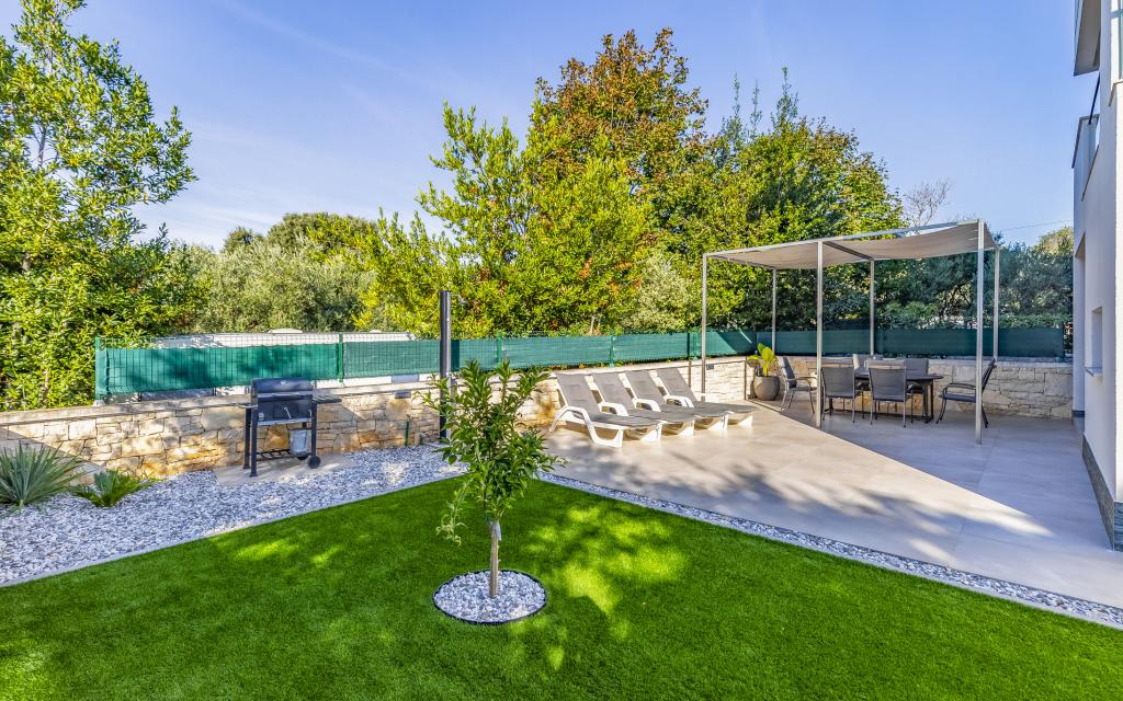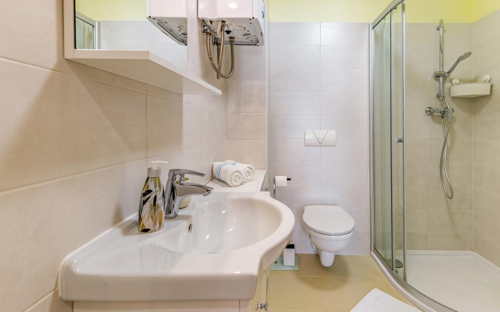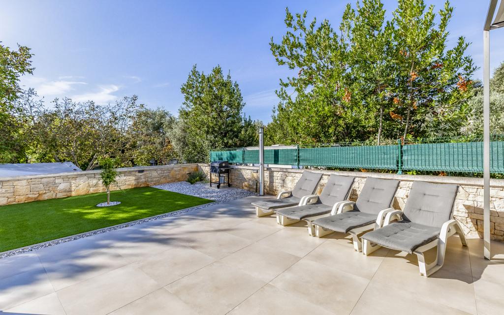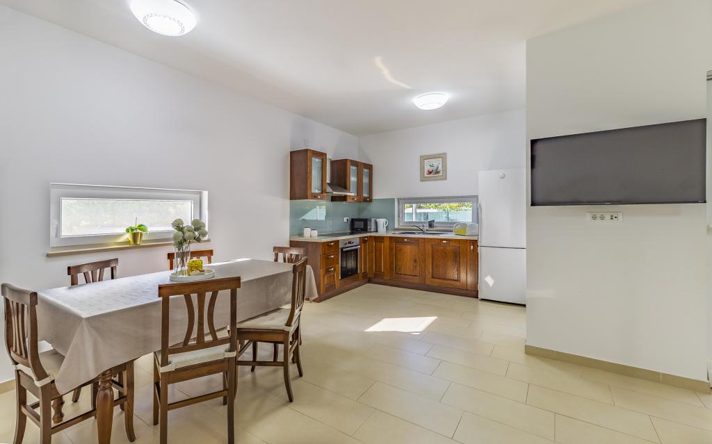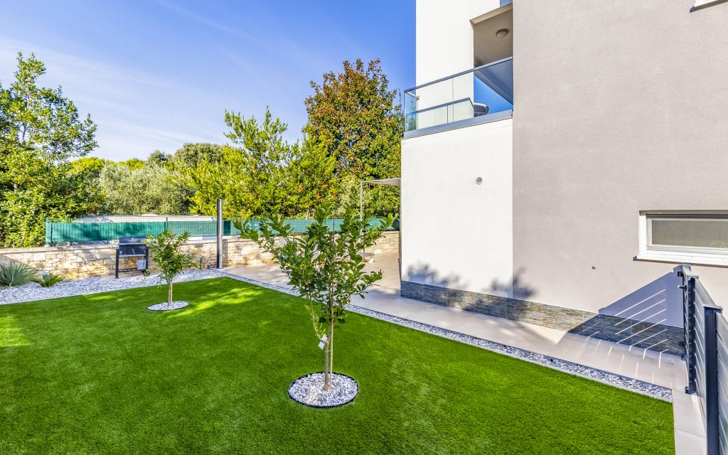 Fuldt møbleret lejlighed (80 m2) i en fremragende beliggenhed i en rolig del af Banjol, kun 5 minutters (300 m) gang fra de smukkeste strande i området. Lejligheden ligger i stueetagen af en boligbygning med kun tre lejligheder. Lejligheden har en privat have (100 m2) med terrasse, bord, liggestole, udendørs bruser og grill, hvilket giver mulighed for behageligt socialt samvær med masser af privatliv og er især velegnet til børnefamilier. Der er en privat parkeringsplads ved siden af bygningen med direkte adgang til haven og terrassen. Haven blev fuldstændig renoveret i 2024. Hele bygningen er beskyttet af et sikkerhedshegn (kortadgang). Lejligheden har 2 soveværelser med dobbeltsenge, 2 badeværelser med toilet og bruser, en rummelig stue med en udtrækkelig sofa, spisestue og køkken. Lejligheden har aircondition og er opvarmet om vinteren (gulvvarme) og har en indendørs pejs, så den også er velegnet til ophold i de koldere efterårs- og vintermåneder. I umiddelbar nærhed af lejligheden er der adskillige barer og restauranter samt dekorerede butikker.