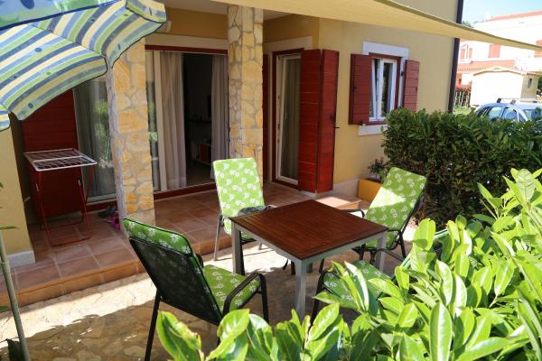 Ferielejligheden ligger i rolig ferie destination Volme (Banjole) i det sydlige Istrien, i nærheden af Premantura og Medulin og blot fem kilometer fra Pula. Lejligheden har aircondition, satellit-tv, herunder tyske kanaler, dvd-afspiller, gratis trådløs internetadgang, en privat sikker, gratis sengelinned og håndklæder, et fuldt udstyret køkken med en ovn, kaffemaskine, el-kedel og mange andre apparater og redskaber. I løbet af vinteren kan du bruge gas centralvarme for behagelig varme. Sengene måler 160 x 200cm i soveværelset og 140 x 200cm til den supplerende og sovesofa. Der er også en børneseng måler 80 x 140 cm. En privat parkeringsplads er til rådighed lige foran huset. Der er en pool (10 x 4 m, maksimal dybde 1, 9 mio), samt en privat, indhegnet lille terrasse med en parasol og liggestole.