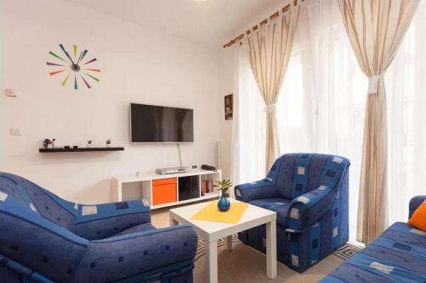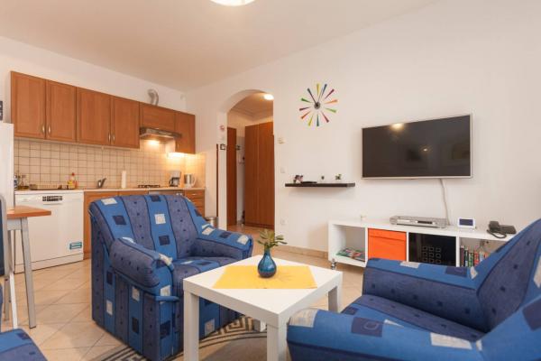 Turistskat er inkluderet i prisen.Der er butikker og mange seværdigheder i den nærliggende Premantura, Medulin, Fažana eller Pula, alle inden for 15 minutter i bil. Banjole var en fiskerby, som nu er et perfekt sted at nyde fred og ro og til at slappe af. Mange fisk restauranter tilbyder fisk, som du ikke kan finde andre steder. Omkring 200 meter fra lejligheden er der en stenstrand til svømning og der er mange vandre- og cykelstier fører fx til Kamenjak naturreservat, den sydlige spids af halvøen Istrien. Du kan gå rundt næsten hele halvøen langs en kyst-sti. Den lidt kuperet terræn er også ideel til cyklister eller joggere. De mange bugter med krystalklart vand er populære badesteder.