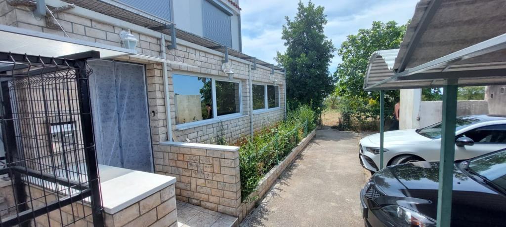 Lejlighed MARIJA er en stor lejlighed med 3 soveværelser og en stue. Foran er der en overdækket og glaseret terrasse. Ved siden af indgangen er der en lille fri plads, hvor man kan sidde og eventuelt opsætte en grill, som er tilgængelig i lejligheden. Lige foran indgangen er der 2 overdækkede parkeringspladser til 2 biler.