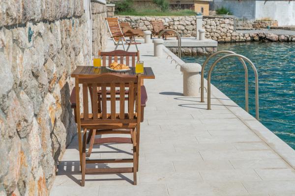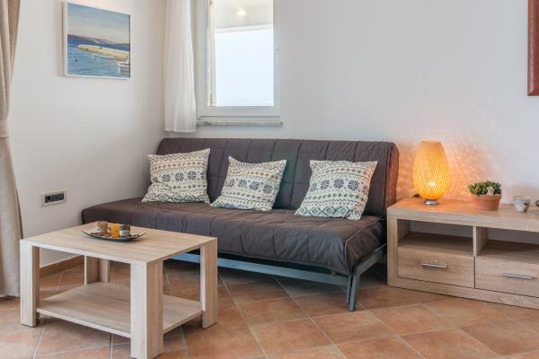 Helt og moderne udstyret lejligheder i huset på havet. Hver af de to lejligheder er 90 m2. Lejligheden har to etager og i stueetagen er der stue, køkken, toilet og en rummelig terrasse. På anden sal er der tre soveværelser og et badeværelse. Alle værelser har aircondition. Terrassen har udsigt over haven og havet.