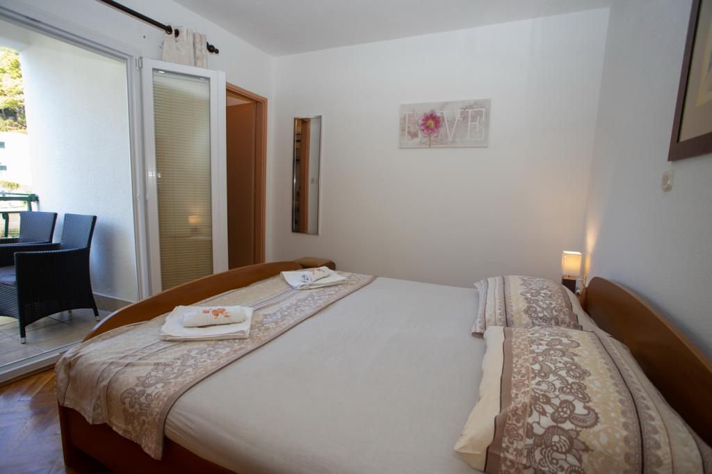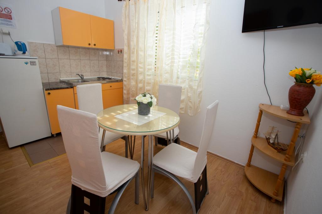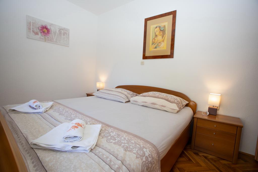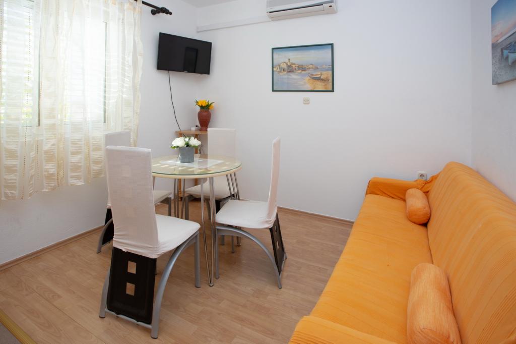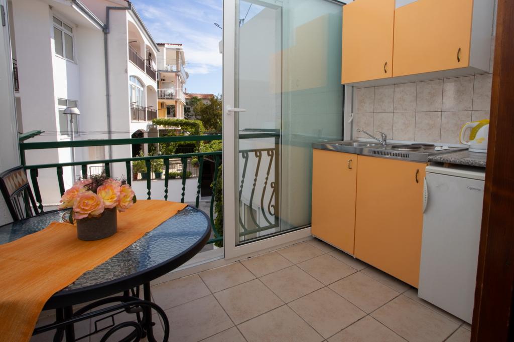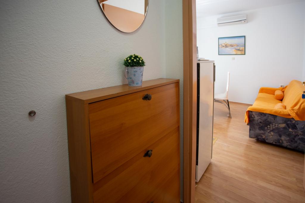 Lejligheden er beliggende i Baska Voda i Split-Dalmatia County. Væk fra centrum og strand 200m, omgivet af den sydlige side af lange sandstrande og den nordlige bjergskråningen. Lejligheden har et køkken, soveværelse med badeværelse og balkon. Inkluderer WiFi, tv, aircondition og har en parkeringsplads.