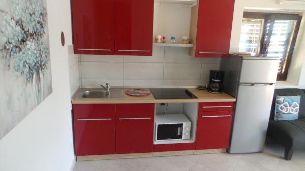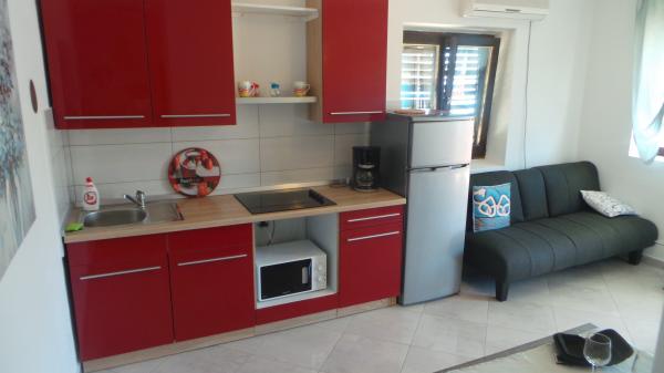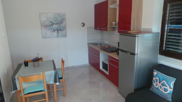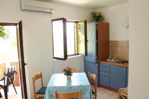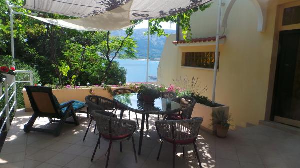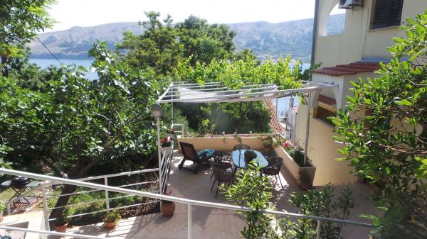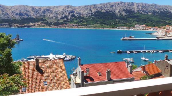 Fuldt møbleret lejligheder med terrasse og direkte udsigt over havet og hele Baska. Lejlighed Robi lejlighed med balkon med udsigt over havet eller på siden af huset. Huset ved havet ved trapper og er ikke egnet til dårligt motile, personer i kørestole. Bygningen har sin egen parkeringsplads. Tæt på nudiststrand. Til den lille strand er kun 100 m og til Vela strand, berømte Baska 2 km lange sandstrand er cirka 15 minutters gang til havet. Huset er beliggende i et roligt sted, over havnen, velegnet til gæster med skibe.