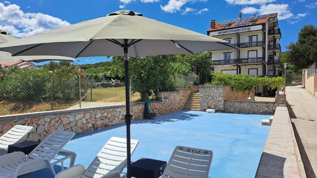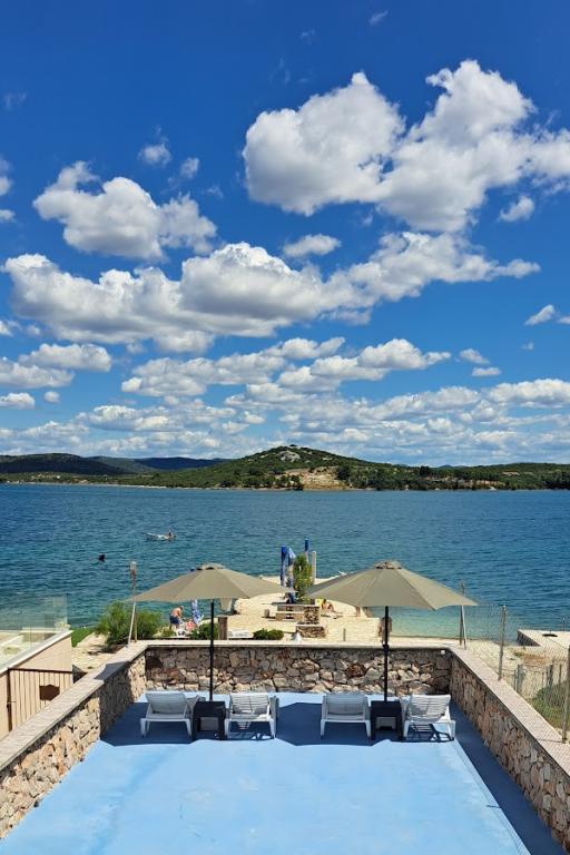Lejlighedshus ŠTIZ-BETINA - Din ideelle ferie ved havet! Lejlighedshuset ŠTIZ-BETINA ligger direkte ved kysten i byen Betina på øen Murter og tilbyder det perfekte miljø for en afslappende ferie. Vores anlagte stenstrand er udstyret med liggestole og store parasoller, som du kan bruge gratis. Kommer du med båd? Vi tilbyder mulighed for søsætning og fortøjning for fartøjer op til 7 meter, med sikret parkering til trailer inde i den indhegnede gård. Beliggenhed: Huset ligger 1,5 km fra centrum af Betina, hvor du finder den gamle bymidte, butikker, caféer, restauranter og byens største strand. Øen Murter er let tilgængelig med bil, fordi den er forbundet med fastlandet med en vindebro, som hæves to gange om dagen. Vi tilbyder: seks lejligheder (2+2) og fire studier (2+1). Hver boligenhed omfatter: et fuldt udstyret køkken, aircondition, gratis Wi-Fi, fladskærms-satellit-HDTV, toilet med bruser, sengelinned og håndklæder. Alle lejligheder og studiolejligheder har en smuk udsigt over havet og haven.