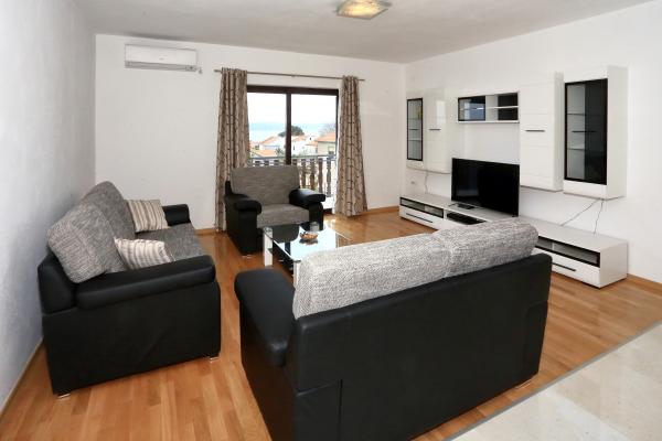 Lejlighed Ante er et moderne og fuldt udstyret lejlighed med udsigt over havet. Lejligheden indeholder 4 soveværelser, 2 badeværelser, køkken og stue, 3 balkoner, hvilket gør det behageligt nok til 10 personer. Også, husholdning lejligheder jei have, hvor der er en grill og havemøbler, hvor man kan nyde med familie og venner.