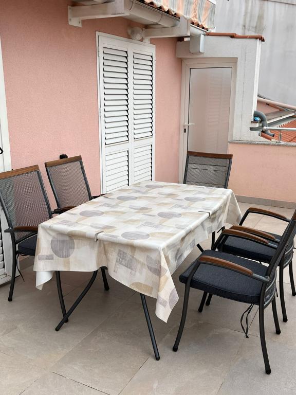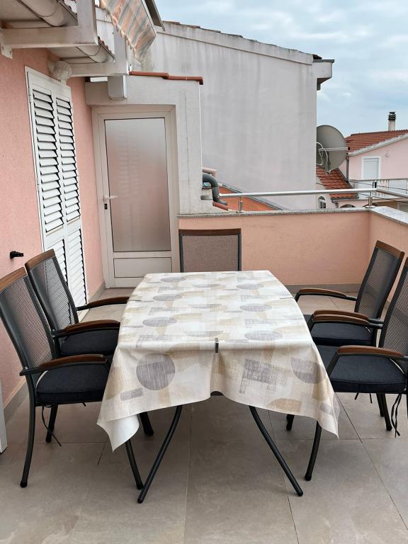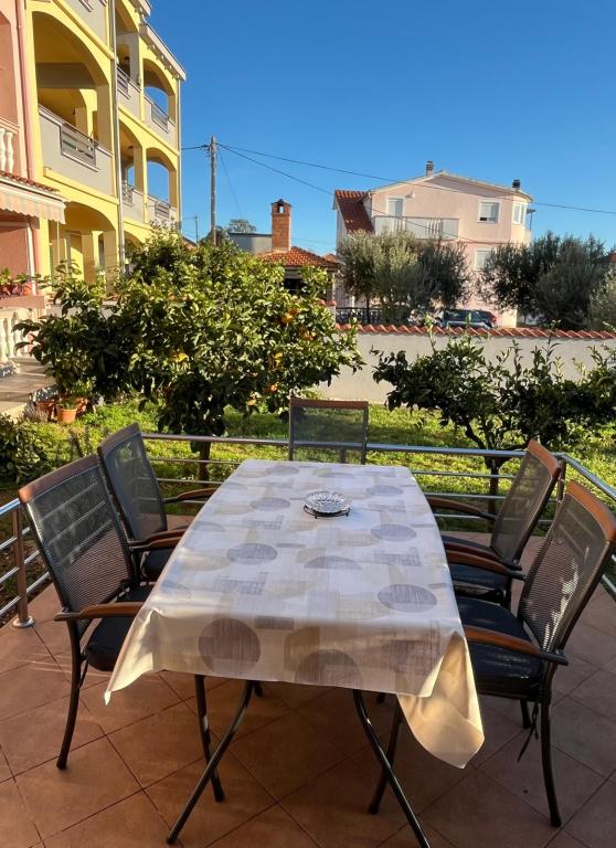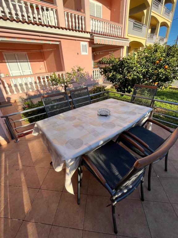 Tillykke til Frleti-familien! De tog imod os varmt og venligt. Lejligheden var pæn, ren, udstyret med service, sengetøj, TV, aircondition og WiFi. Ligesom det er på billederne, sådan er det i virkeligheden. Lejligheden er rummelig, pænt møbleret, sengene er behagelige at sove. Det har en stor terrasse med fortelt, hvorfra du kan nyde udsigten over Frlete-familiens middelhavshave. En lang række velholdte strande med klart blåt hav og smukt udsmykkede promenader langs havet med et stort antal restauranter og barer. Ideel til at flygte fra støj og hverdagsliv. Fred, stilhed med lyden af græshopper, mågeskrig og lyden af havet. Ren hedonisme!