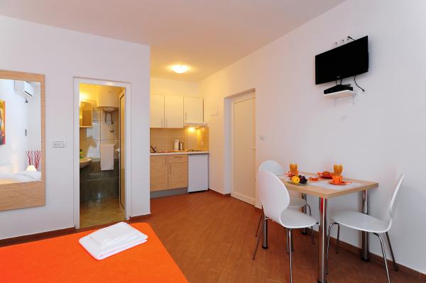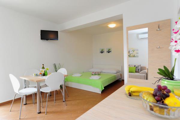 Fuldt udstyret og moderne lejligheder i et roligt område af de datoer, 2 minutters gang til byens centrum og 5 minutters gang til stranden. Ejendommen har en nybygget swimmingpool og privat parkering er gratis.
