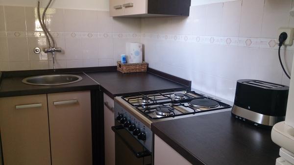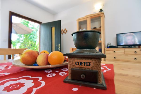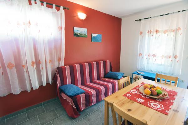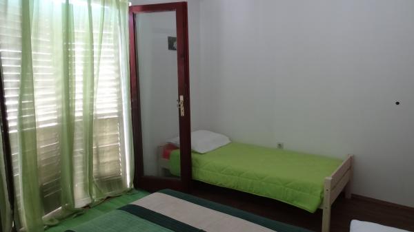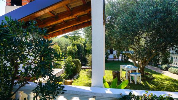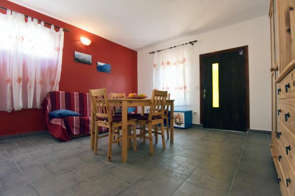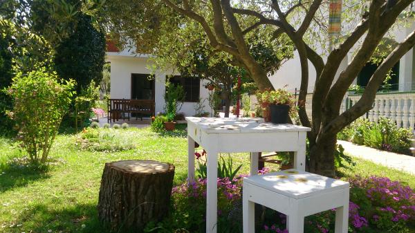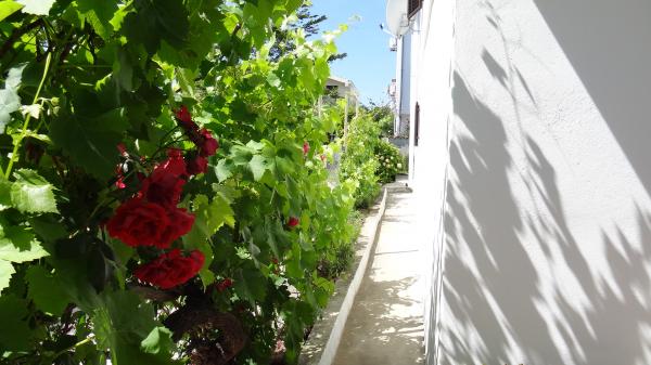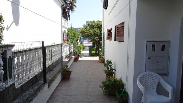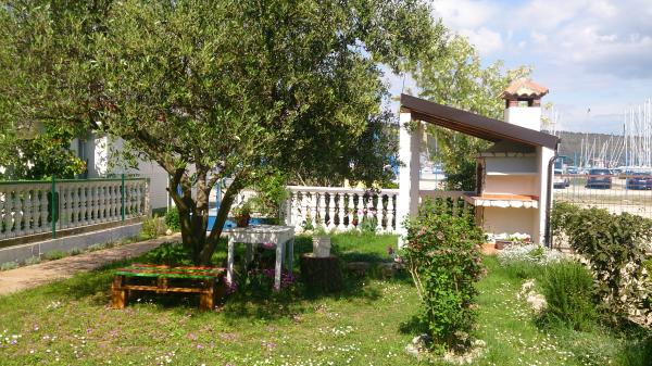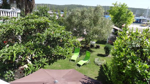 Lille, komfortabelt hus med en fredelig Middelhavet have og udsigt over lystbådehavnen Dalmatien. I stueetagen spisestue og lille køkken, enkeltværelse med bad og toilet. På den sydlige side af den lille have med palmer, en trappe fører op til første sal med to soveværelser (1 aircondition) med en seng, skrivebord, garderobe, badeværelse og toilet. Balkon åbent til haven. På den store terrasse uden for indgangen til huset er en have møbler fra kvalitet træ og en stor paraply. Anlagte græsplæne med en lille oliventræ og nešpulom. Lave Middelhavet planter omgiver område med liggestole, udendørs bruser, og en separat grill afkrydsningsfelt. Foran er en privat parkeringsplads til 3 biler. Huset er fuldt til rådighed for gæsterne. 5 min gang til den smukke sandstrand (strandbar, club dykning, hav scooter udlejning, en stor is, volleyballbaner, strandstole, brusere, parkering)
