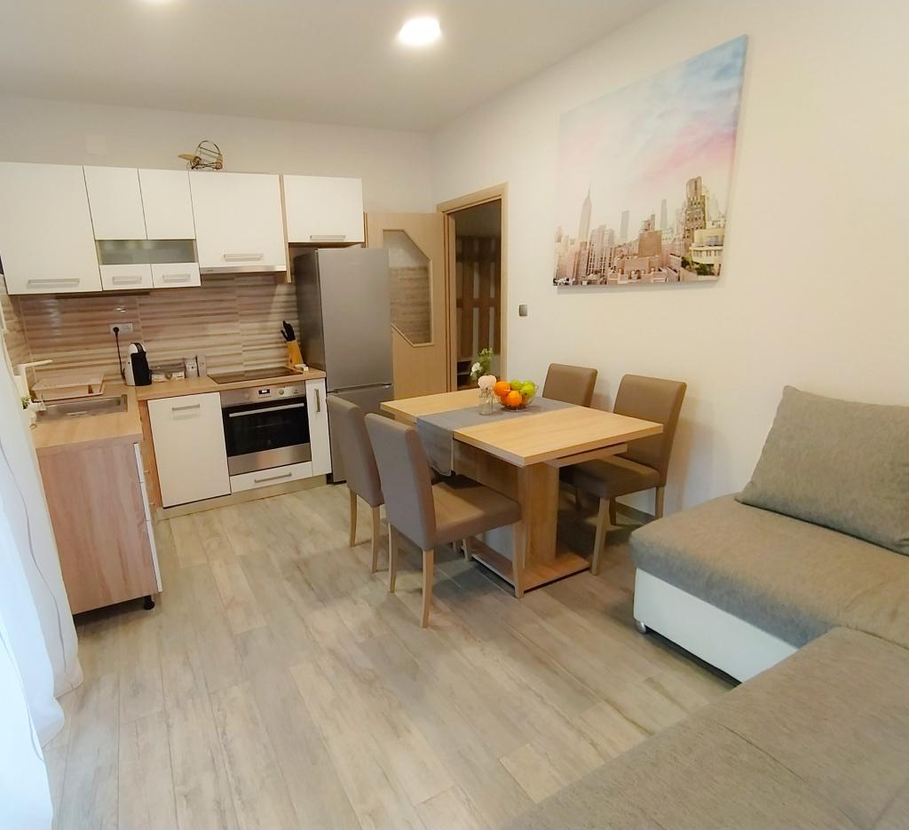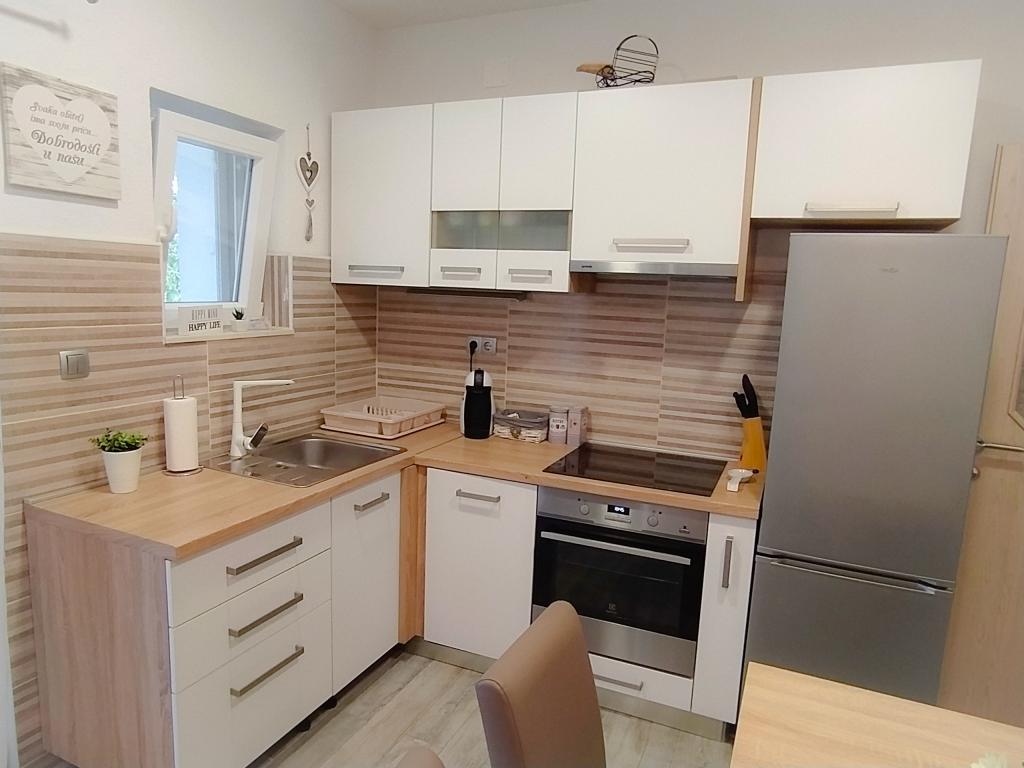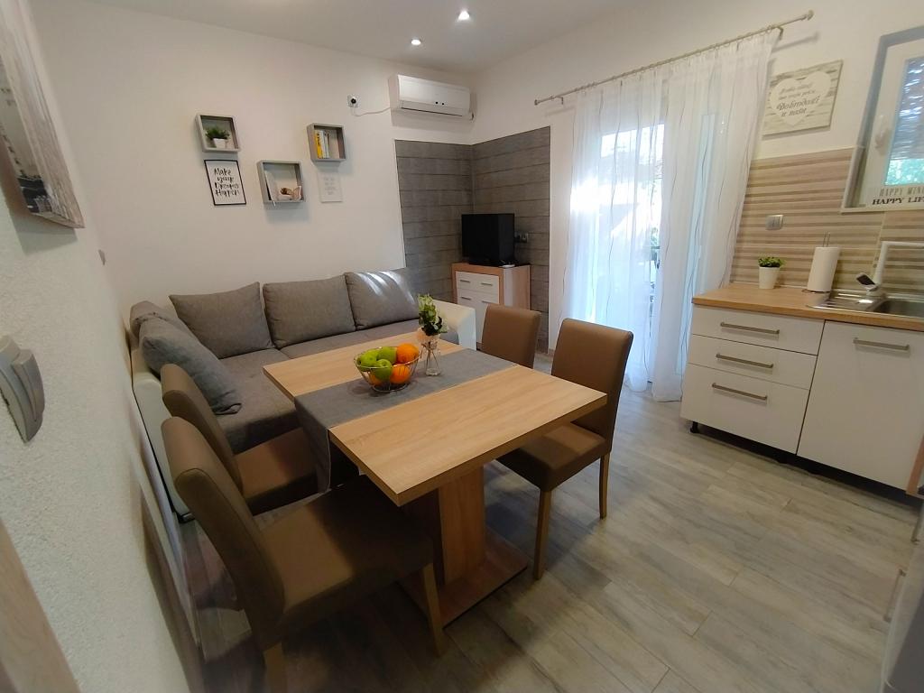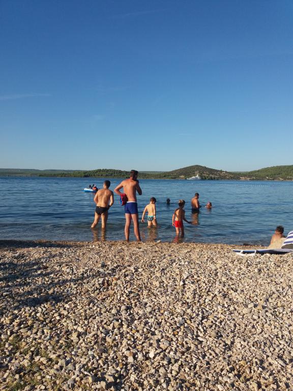 Lejlighed Baza ligger i en rolig landsby Bilice mellem Šibenik og Krka Nationalpark. Lejlighedens størrelse er 35 m2 og 18 m2 terrasse. Det består af soveværelser med to senge, der kan sammenføjes og adskilles, et fuldt udstyret køkken (ovn, fryser, vaskemaskine) og en stue med to senge. Badeværelset er rummeligt, og gratis brug af vaskemaskinen er tilgængelig. Lejligheden har aircondition, Wi-Fi, TV (satellit, Smart TV). Hvis du kommer med børn, kan vi tilbyde dig en rejseseng og en feeder. Privat parkering, en stor gård og grill er til rådighed. Gården er indhegnet og stor nok til at lege med, hvis man kommer med mindre børn. Afstanden til stranden og café med legeplads er 250 m, 5 minutter til fods. Tæt på motorvejen.