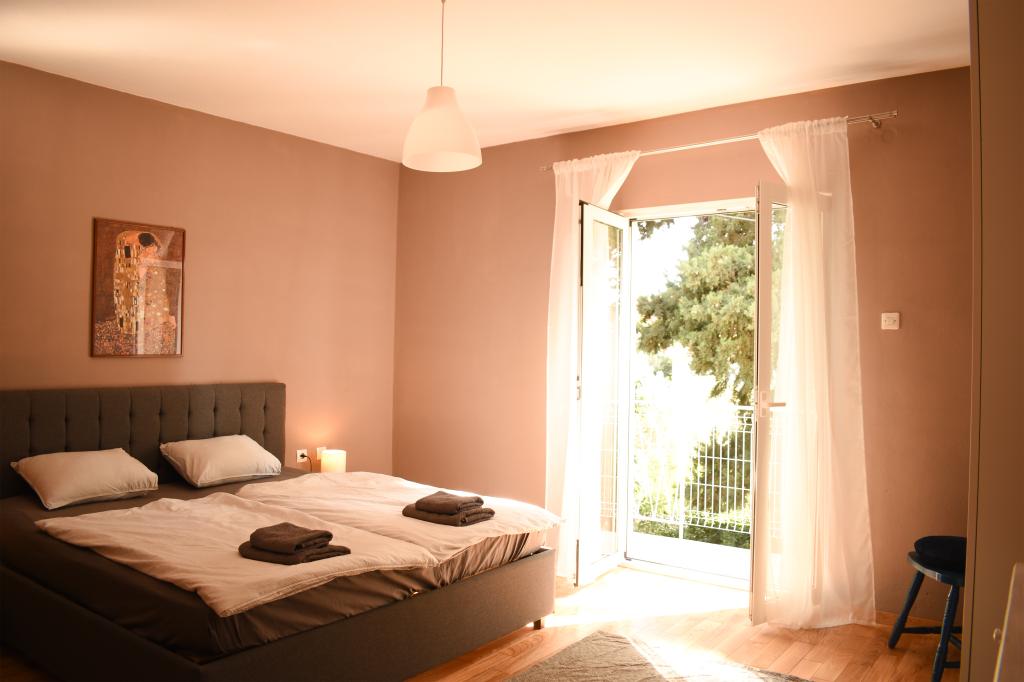 Møbleret lejlighed på første sal med separat indgang i Biograd, i Bošana-området, kun 150 m fra stranden med faciliteter, 300 m fra butikken og ti minutters gang til centrum. Lejligheden har to soveværelser med dobbeltsenge (180x200 og 160x200), et køkken med spisestue og en lille stue samt balkon. Der er også gratis parkering i gården til ét køretøj. Huset ligger i en gård, der ikke ligger direkte ud til vejen, så fred og ro er sikret. To hunde og en kat bor i husstanden separat fra lejligheden, så jeg vil ikke anbefale indkvartering hos os til gæster, der har intolerance eller allergi over for dyr. Jeres kæledyr kan overnatte efter anmodning mod et gebyr, og alle andre gebyrer er inkluderet i prisen. Jeg er tilgængelig for yderligere information.