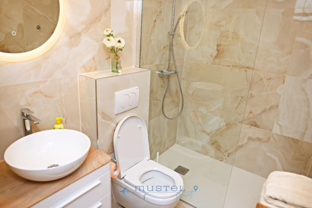 Lejligheden tilbyder komfortabel indkvartering for op til 4 personer, er beliggende på anden sal i bygningen og er ideel til familier, par eller venner. Indhold: 2 soveværelser: et med en dobbeltseng 160x200, det andet med en dobbeltseng 180x200 Badeværelse med bruser og vaskemaskine Fuldt udstyret køkken Balkon med havudsigt - perfekt til morgenkaffe eller aftenafslapning Stue med balkonadgang Gratis parkeringsplads 150 meter fra lejligheden
