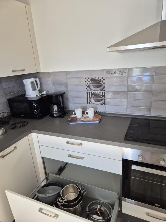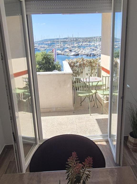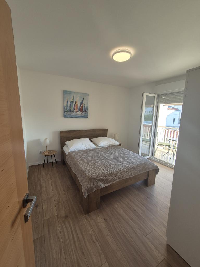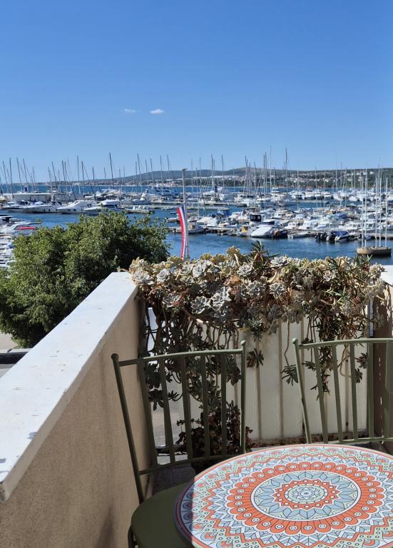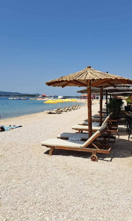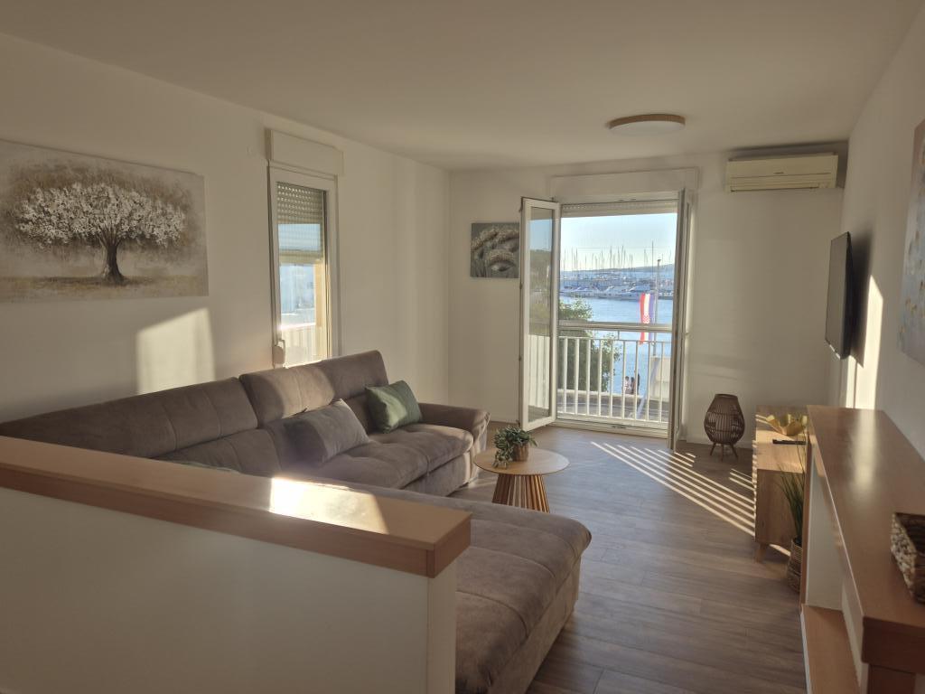 Lejlighed i Biograd na Moru i centrum af byen, første række til havet, med en smuk havudsigt. Lejligheden ligger 20 m fra havet, to strande ca. 450 m væk. To balkoner, hvorfra man kan nyde en smuk udsigt over havet og byen. Ideel til en familie, og alle faciliteter er inden for rækkevidde. To soveværelser til 2+3 personer.