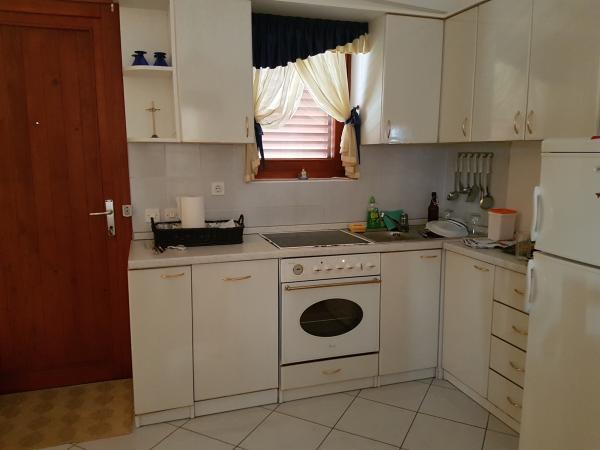 Fuldt møbleret lejlighed i Kumenat lejlighedskompleks i Biograd na moru. Beliggende på første sal har det en terrasse med udsigt over havet, øen Pasman og Kornati National Park. Gæsterne har adgang til wifi, aircondition, parkering, soveværelse, badeværelse, vaskemaskine og opvaskemaskine, køkken, stue (sovesofa), kedel, TV, radio. Havet og stenstrand med sandede dele ligger 20 m fra lejligheden. Du kan opdatere dig på strandcafeen, som også tilbyder parasoller og strandstole, og sjove spil som billard osv. 500 m fra byen ligger en anden strand, Soline, beliggende i en fyrreskov med mange restauranter, sportsaktiviteter og underholdning. Kumenat er et lukket samfund uden trafik, stille og ideelt til ferier og egnet til børn. Den første butik er 5 minutter til fods, til byens centrum 20min til søs eller 5 minutter i bil. Tæt på Biograd er Mirnovec Fun Park, Vrana-søen og Krka og Kornati Nationalparker. Velkommen!