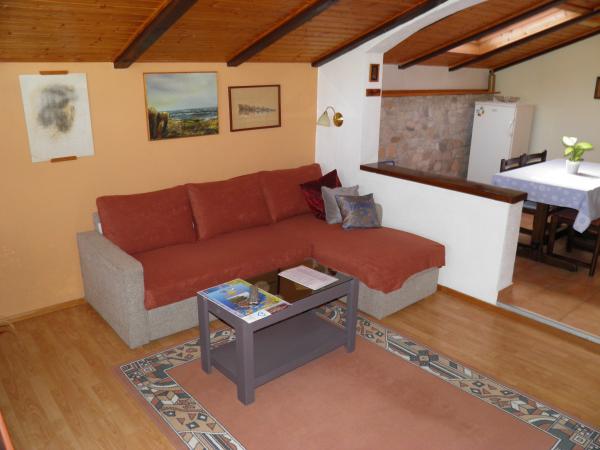 Hyggelig anden 5-værelses lejlighed på gulvet i huset (tagetagen). Mindre end fem minutter fra indkøbscenter, og mindre end 10 minutter fra stranden. Vi har vores egen parkeringsplads i skyggen (efter aftale og til to biler). Fås i sten bygget ind i pejsen (grill). Gæsterne kan bruge grøntsager fra vores egen have (tomater, peberfrugter, agurker, etc.). Lejligheden har to dobbeltværelser med sovesofa i stuen, DVB-T / S modtager, DVD-afspiller med en samling af film. Køkken (semi åbent koncept) med alle nødvendige apparater. To altaner (stue og et af soveværelserne). Balkon stuen er helt i skyggen. Gæsterne har ubegrænset adgang til internettet og til 2, 5 MB / s.