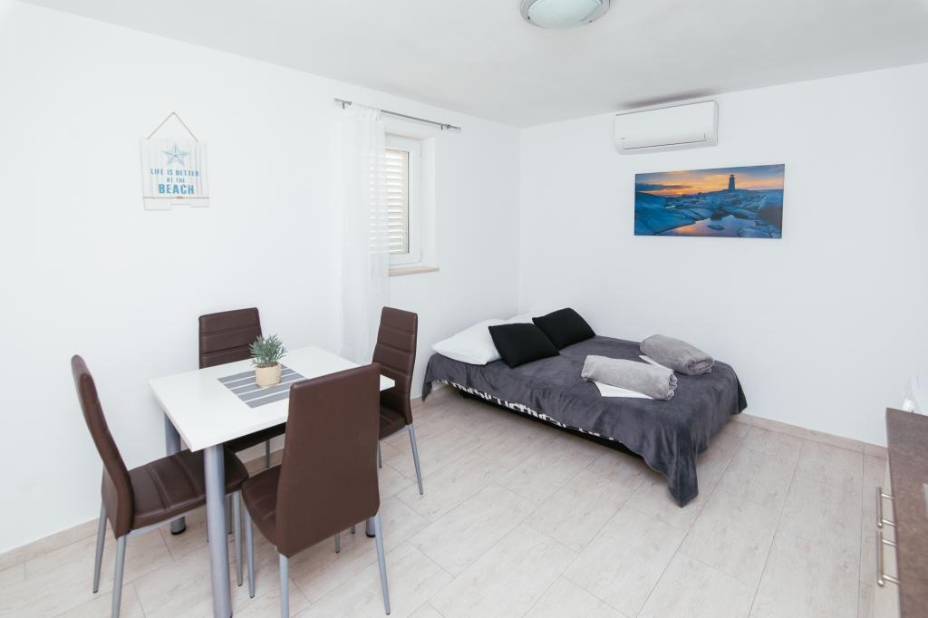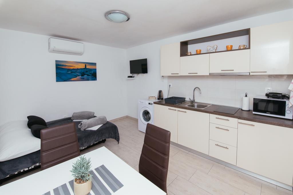 Lejlighederne AE ligger i Biograd na moru på Splitska ulica 37a. Lejlighederne ligger 700 m fra Dražice-stranden (maks. 7 minutters gang), og byens centrum ligger 500 m væk. Butikken ligger 20 m fra lejligheden. Lejligheden har et soveværelse, sovesofa, køkken, badeværelse, spisestue og en stor fælles terrasse. Gratis parkering, aircondition, wifi, vaskemaskine og grill til rådighed.