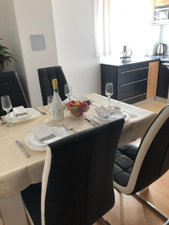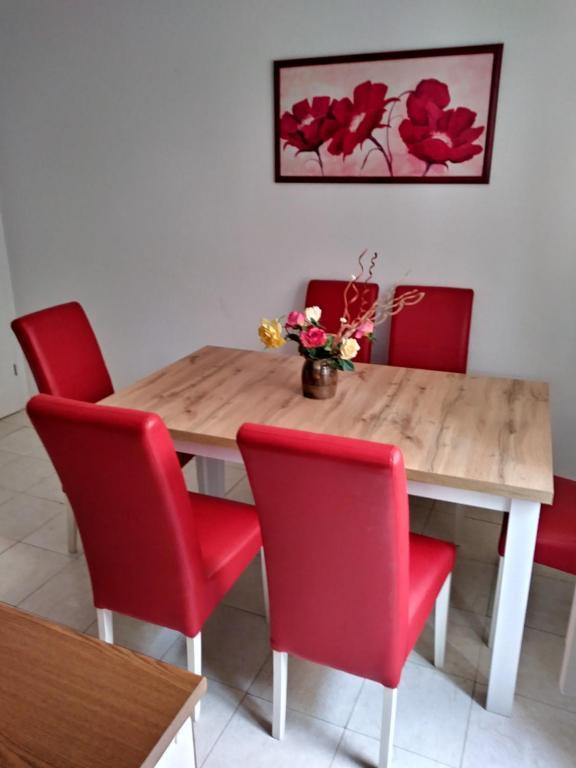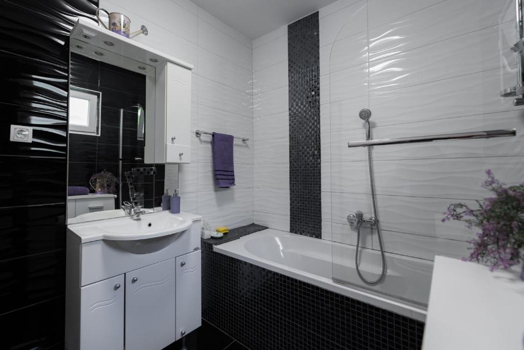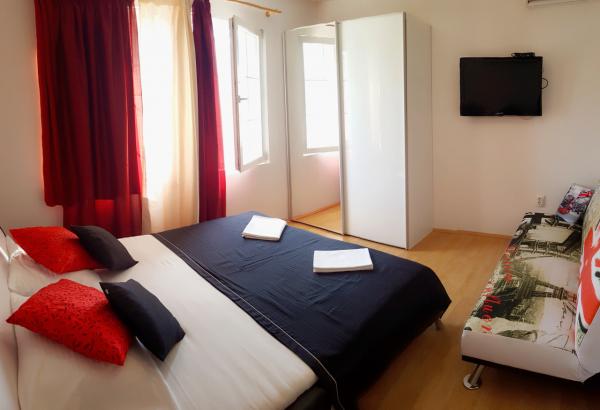 Lejlighed A4+2 er hele husets stueetage med separat indgang, fuldt og moderne udstyret, 90 m2. Det har en rummelig og komfortabel stue, to soveværelser, et køkken med spisestue, et badeværelse og en gang. .En stor terrasse med udsigt over fyrreskoven er til gæsternes rådighed. Der er en anlagt have foran med grønt og blomster Det er beliggende i en stille, smukt anlagt gade en dag. En grill og et bageri er til rådighed for gæster ved siden af huset. Den er udstyret til 6 personer, og en barneseng er gratis til rådighed efter anmodning. Lejlighed 2+1, ligger på husets første sal, 40 m2, moderne udstyret, helt ny med udsigt til fyrreskoven, Den består af køkken, spisestue, badeværelse og soveværelse. TV, internet, aircondition. Det er udstyret til ophold på 3 personer. Gæsterne har adgang til en grill, et bageri, en parkeringsplads og en terrasse. Lejligheden har separat indgang og egen terrasse...