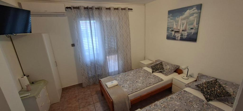 Lejlighederne er beliggende i Biograd na moru i Kumenat-bosættelsen. Ideel til en familieferie. Tæt på stranden. Kysten er indrykket, så alle kan finde deres eget stille hjørne ved havet. Strandene er sandede og småsten. Den nærmeste strand ligger 5 minutters gang derfra, og byens centrum ligger cirka 20 minutters afslappet gåtur langs promenaden ved havet. Byen Biograd byder på adskillige faciliteter for voksne og børn.
