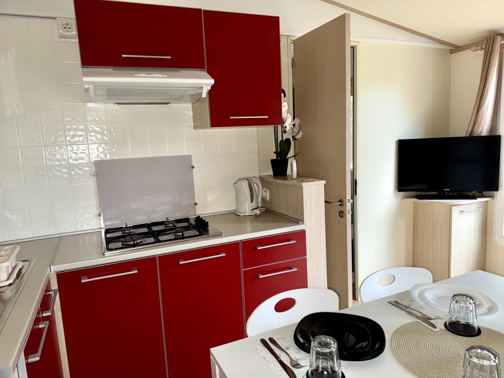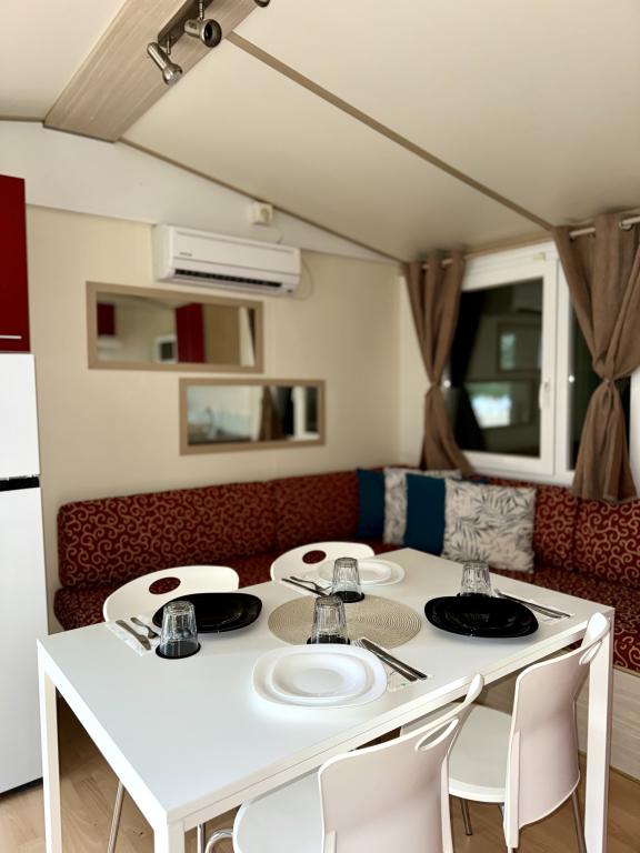 Mobilhome Bonaca ligger på Bakija-campingpladsen, 40 m fra havet, med nem adgang til stranden. Ikke langt fra Soline-stranden, 2-3 minutters gang, 1 minuts gang til Studenac-markedet og 7-8 minutters gang til centrum. Fuldt udstyret med have, køkken, komfortabel stue. Parkering! Egen udendørs grill i huset og eget udendørs bruser. Faciliteterne er til 4 personer, 2 soveværelser, 2 badeværelser. Rummelig terrasse, perfekt til et behageligt ophold med udsigt over havet og smukke solnedgange.