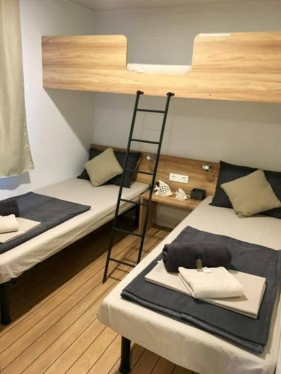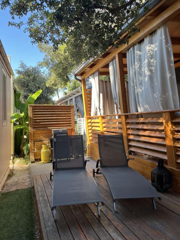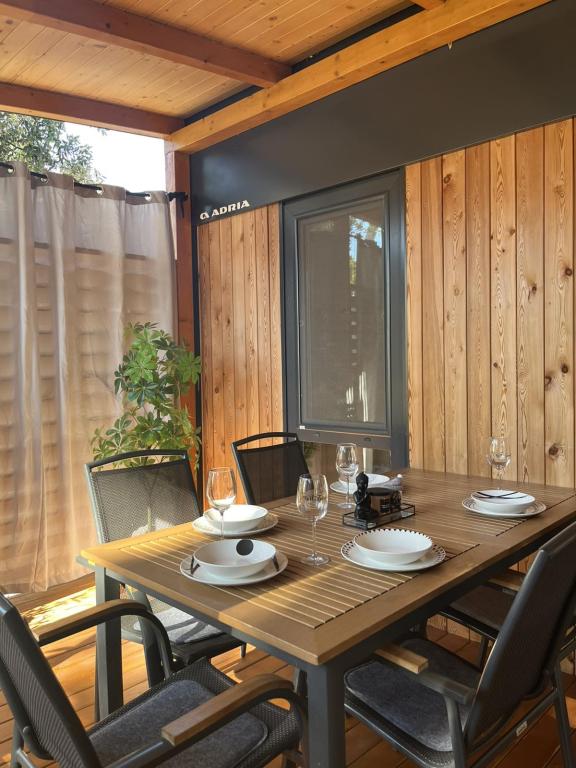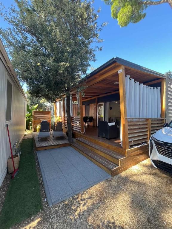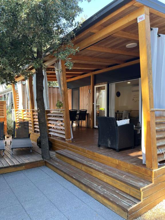 Moderne mobilhome med aircondition på campingpladsen Park Soline, kun få skridt fra stranden og 15 minutters gang fra Biograds centrum. Det tilbyder 2 soveværelser, et køkken, en stue, 2 badeværelser og en overdækket terrasse med havemøbler. Gratis Wi-Fi, parkering, børneunderholdning, sportsbaner og en middelhavsrestaurant på stedet. Perfekt til familier eller par, der søger afslapning i skyggen af fyrretræer, tæt på alle de største attraktioner.