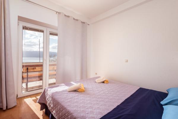 Fuldt udstyret, ny lejlighed i en rolig landsby, beliggende ved havet. 2 minutters gang til stranden, butikker, restauranter, med smuk udsigt over havet og en stor terrasse dør, velegnet til små børn