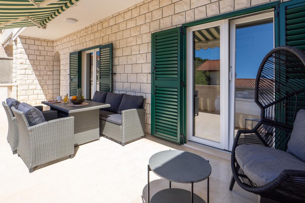 Lejligheder Jelavic ligger i den vestlige del af Bol, lige over promenaden til stranden "Zlatni rat" (Promenade). Huset ligger ca. 150 m fra havet og de første strande. Det er et par minutters gang fra centrum af Bol, så vores gæster let og hurtigt kan få dagligvarer og tjenester fra postkontor, bank, rejsebureauer, politi, ambulance osv. Ikke langt fra huset er der de fleste restauranter, boliger og caféer og natklubber. Selvom "Zlatni rotte" (ca. 2000 m) fra vores hus til stranden fører en smuk promenade ved havet, fra centrum, til denne enestående smukke og verdensberømte strand, er der en regelmæssig bådlinje. Vores hus er bygget i en klassisk dalmatisk stil med facader i hvid Brac-sten, asfalterede terrasser til at bo uden for lejligheden med metalhegn og stensøjler. 20 års erfaring inden for turisme og konstant forbedring af servicen sætter vores lejligheder øverst i udbuddet af privat indkvartering i Bol på øen Brac.