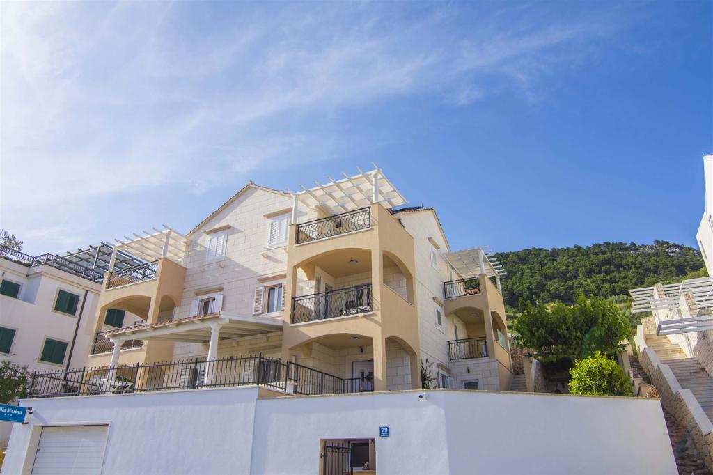 Villa Marina ligger i en roligere del af Bol på øen Brač, få minutters gang fra bymidten og havet. Ejendommen tilbyder flere lejligheder, som alle er pæne, funktionelle og udstyret til et behageligt ophold om sommeren. Hver lejlighed har eget køkken, badeværelse, aircondition og balkon eller terrasse. De fleste har udsigt over havet eller byen. Gæsterne har adgang til privat parkering på ejendommen. Bols centrum, restauranter, butikker og havnefronten kan nemt nås til fods, og den berømte Zlatni Rat-strand ligger cirka 15-20 minutters gang eller et par minutters kørsel væk. Ejendommen er velegnet til par, familier og små grupper, der søger enkel og komfortabel indkvartering tæt på alle faciliteter, men uden støj.