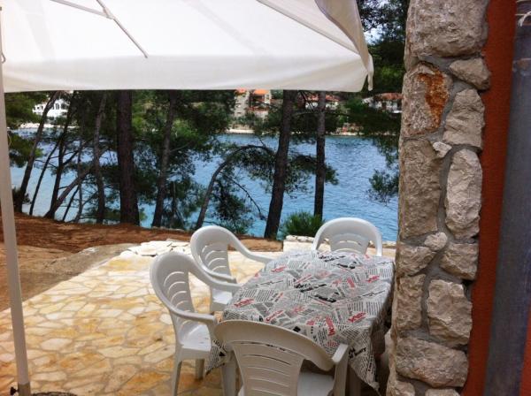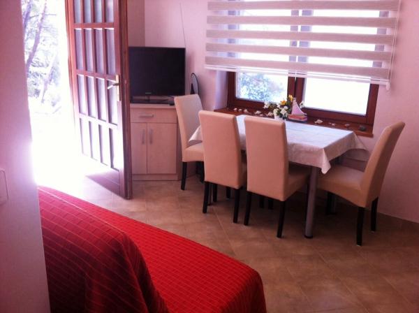 Fuldt møbleret lejlighed i en stille bugt, fyrreskov, ligger 7 meter fra havet, stranden direkte foran lejlighederne, en stor sten terrasse og grill. Anlægget ligger 2 minutters gang fra butikker, posthuse og restauranter