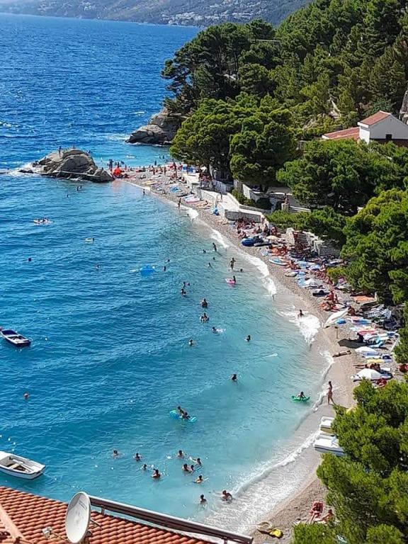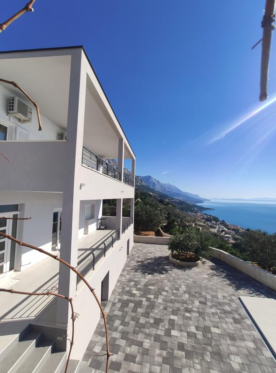 Huset ligger i den vestlige del af Brela, på en bakke med en smuk udsigt over de omkringliggende landsbyer og øer. Lejligheden har to soveværelser, en stue, to badeværelser, et køkken og en spisestue samt en stor balkon med havudsigt. Alle værelser har aircondition, gratis internet og TV/satellit. Der er en overdækket parkeringsplads til din bil foran huset. Vi er 5 til 10 minutter væk fra smukke strande i bil. Vores gæster har gratis sikker parkering 50 meter fra Jakiruša-stranden (se billeder). Vi ser frem til din ankomst. Vi står til din rådighed for eventuelle spørgsmål.