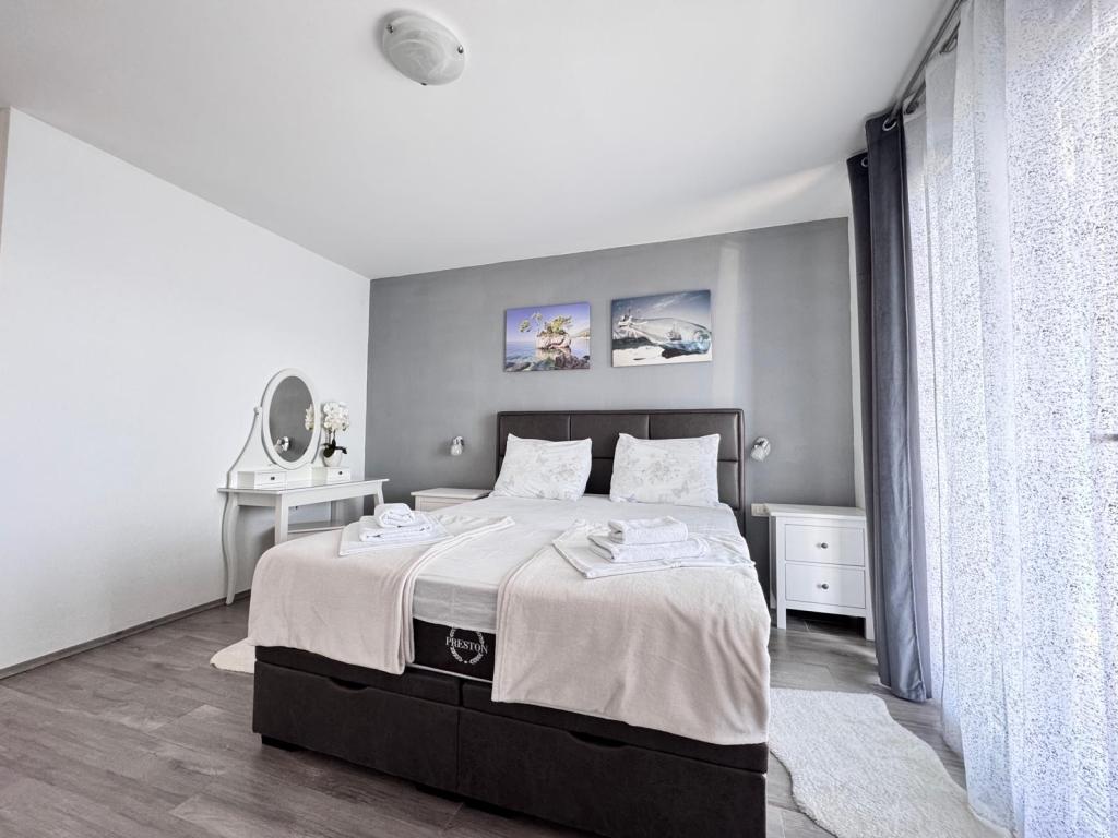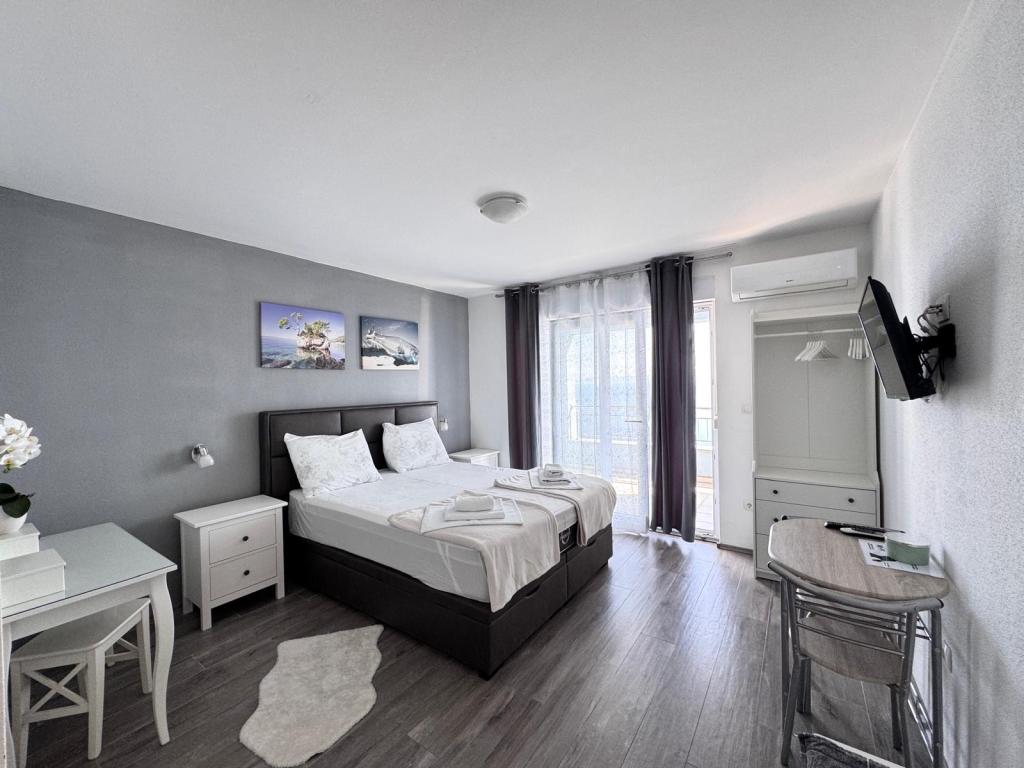 VILLA Orada omgivet af fyrreskov med udsigt over havet og de dalmatiske øer beliggende i en stille bugt Podcrkavlje i Donja Brela. 150 meter væk er de smukke strande, hvor alle kan finde noget for sig selv fra restauranter, caféer, cocktailbarer, souvenirs og ting til stranden til vandsport. Lejligheden ligger kun 10 minutters gang til mini markeder og rejsebureauer, som igen giver eventyrlystne rafting på Cetina floden nær byen, vandreture på bjerget skråning og dagsture med båd til nærliggende dalmatiske øer. Brela er unik for sin krystal blå hav, smukke strande og bugter, og er lige som sådan et ideelt sted for din ferie og venlige værter vil sørge for, at jeg føler sig trygge og tilfredse. Velkommen!