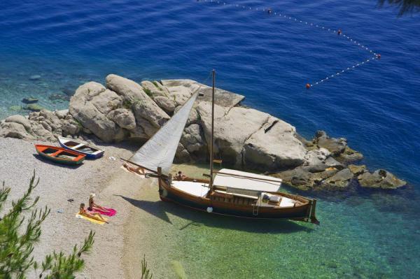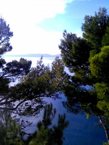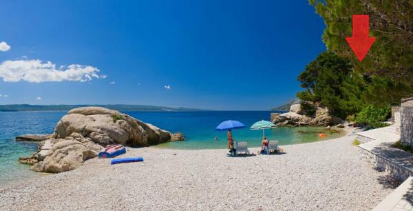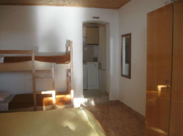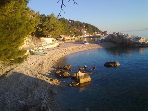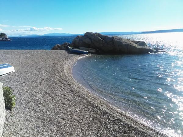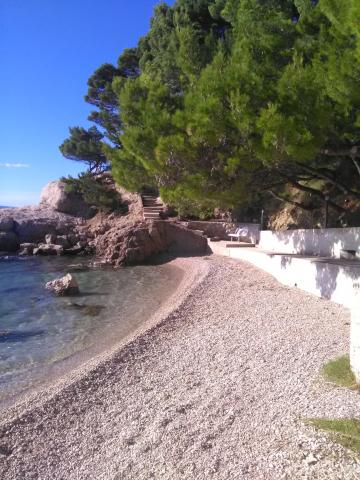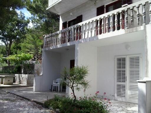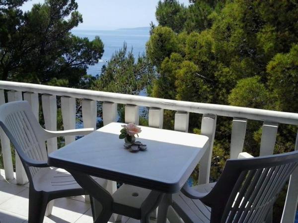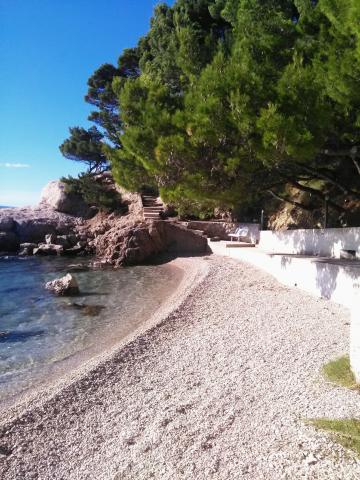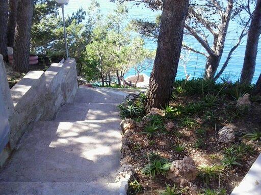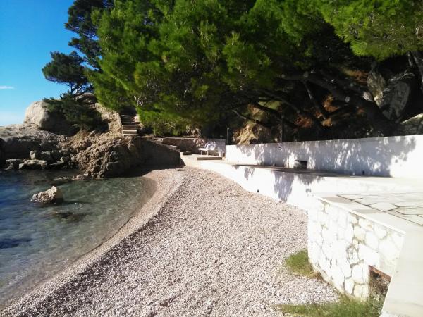 Studio lejlighed er beliggende i en stille bugt Jakirusa væk fra stranden mindre end et minut gåtur, 10m over havets overflade, omgivet af en tyk fyrreskov i uberørt natur med smuk udsigt over øerne Brac og Hvar. På den nærliggende strand kan du finde din ideelle sted at slappe af, nyde lyden af bølgerne og den smukke middelhavsklima. Studio lejlighed ligger i stueetagen på ca. 30 m2 af indvendige og udvendige privat terrasse. Terrassen, der hører til det maritime område med udsigt over havet, strande og øer. Studiet består af et værelse med en seng og køjesenge, badeværelse og tekøkken med komfur og køleskab og fryser. Håndklæder, toiletpapir, viskestykker, opvaskemiddel og linned er inkluderet. Parkering, turist skat og brug af Wi-Fi-tjenester er inkluderet. Værelse og Room 1 er placeret på anden sal, to værelser har en separat badeværelse og en balkon med udsigt over havet og øerne