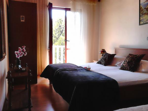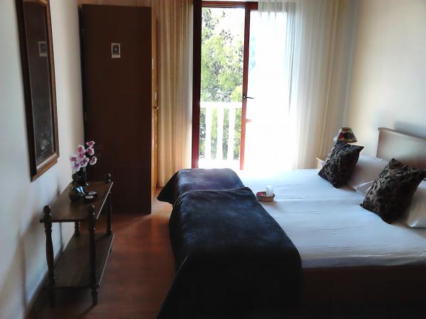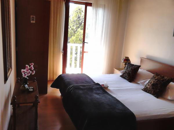 Turistskat er inkluderet i prisen.Værelse og Room 1 har aircondition og har evnen til at bruge fælles køkken, som du kan se i billederne. Køkkenet har apparater og redskaber, som du kan bruge, når du har brug et køkken til at dele med vores familier og turister, der opholder sig i værelset ved siden af dit. Hvert værelse har sin egen køleskab. Du kan spise på altanen, i køkkenet eller på den store terrasse foran huset. Hvis du ønsker at spise i restauranten, 100 meter væk fra os er der en meget flot restaurant med rimelige priser. Langs promenaden, der strækker sig fra stranden nedenfor vores hus til centret, er der flere gode restauranter, der tilbyder lokale fisk og skaldyr delikatesser og andre retter. Foruden restauranten er der også lokale strandbarer, der giver en rigtig maritim stemning.