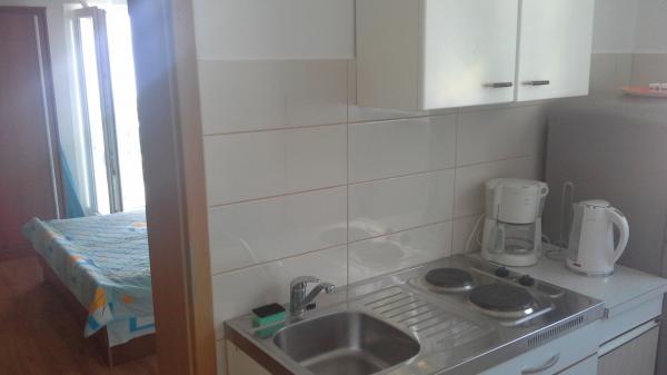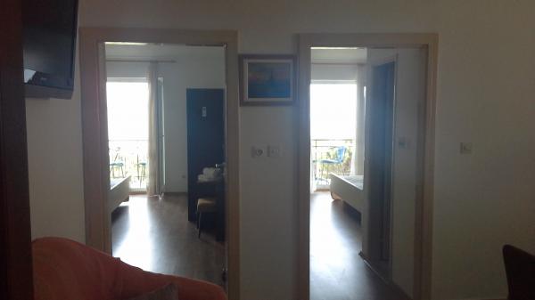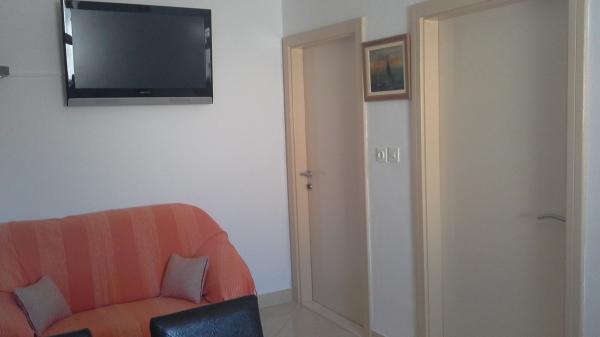 Rig Apartments ligger på anden sal af huset. Vores hus ligger 5 minutters gang fra centrum af Brela-bugten og 5 minutters gang fra den nærmeste sandstrand i skyggen af fyrretræer. Vi er beliggende 50 m over den vigtigste vej, der løber gennem byen, i et roligt område omgivet af olivenlunde. Husets gæster tilbydes gratis parkering og med vores terrasse byder på en betagende udsigt over havet og de nærliggende øer Brac og Hvar. Vores lejligheder giver den komfort, og værter er venlige og venlige.