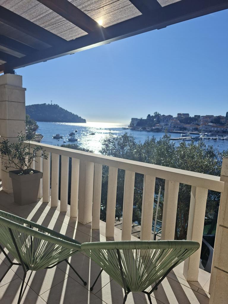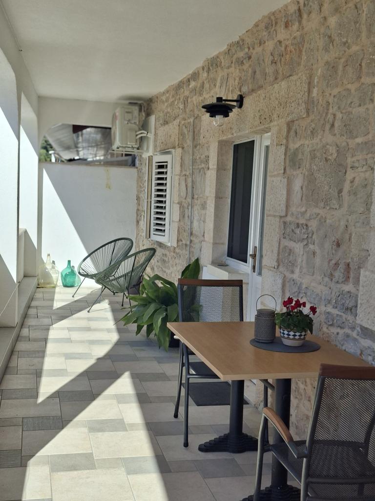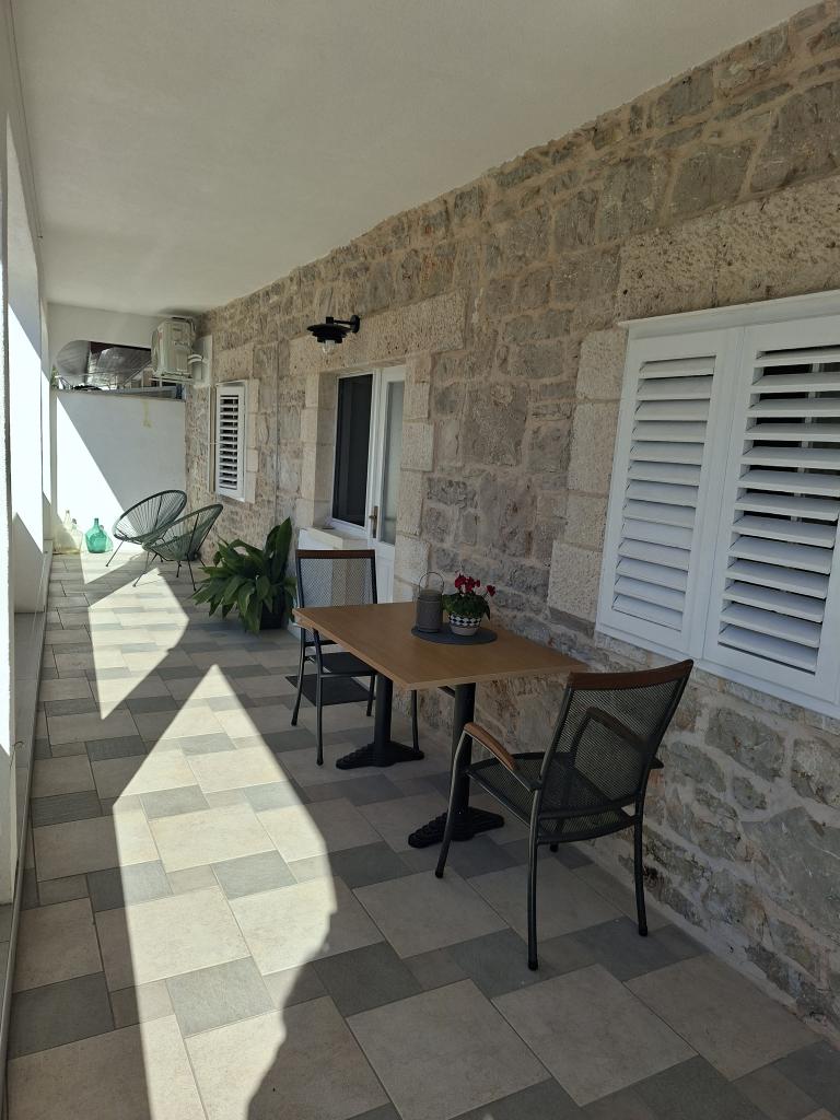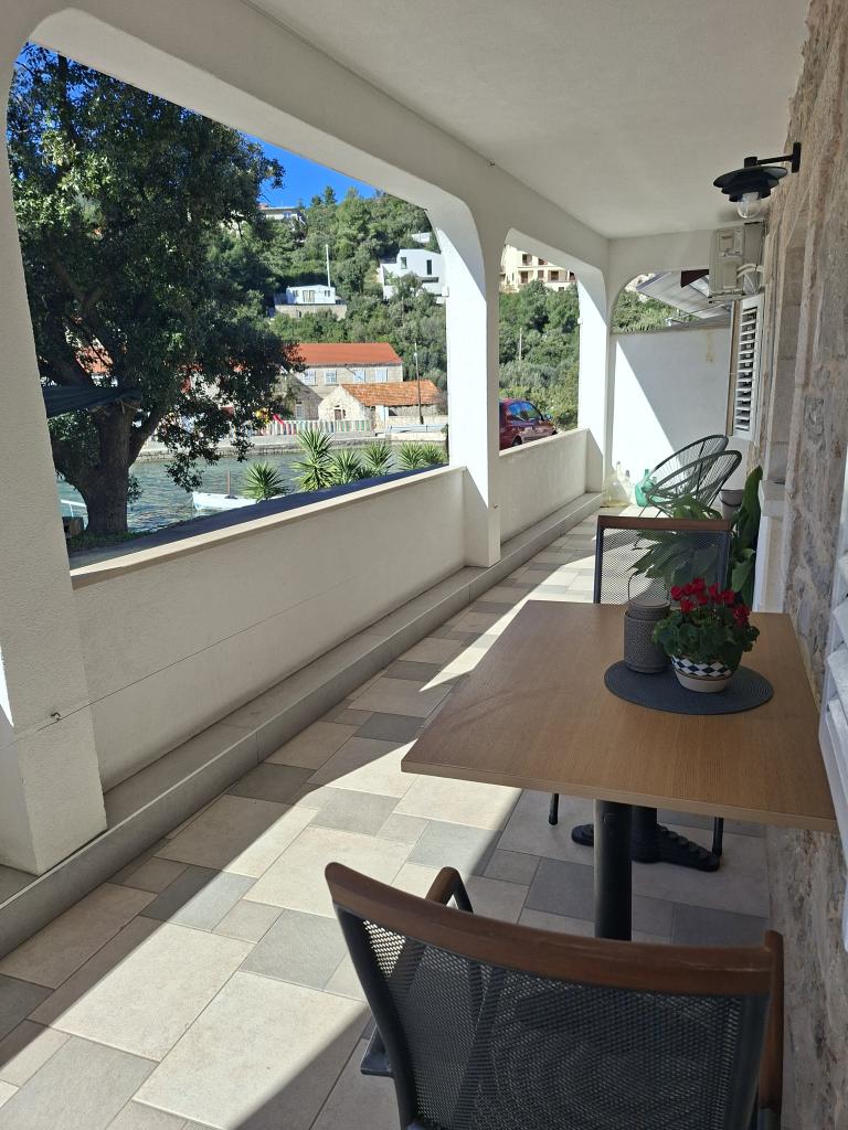Helt og moderne indrettede lejligheder i den fredelige bugt Brna på sydsiden af øen Korcula. Anlægget er beliggende i centrum af byen, alt er lige ved hånden, butikker, restauranter, pizzeriaer. Huset ligger ved kysten, 6m som er ideel til familier med børn. På forsiden er en balkon med en smuk havudsigt, og på bagsiden af huset er der en stor gård ideel til børns lege.