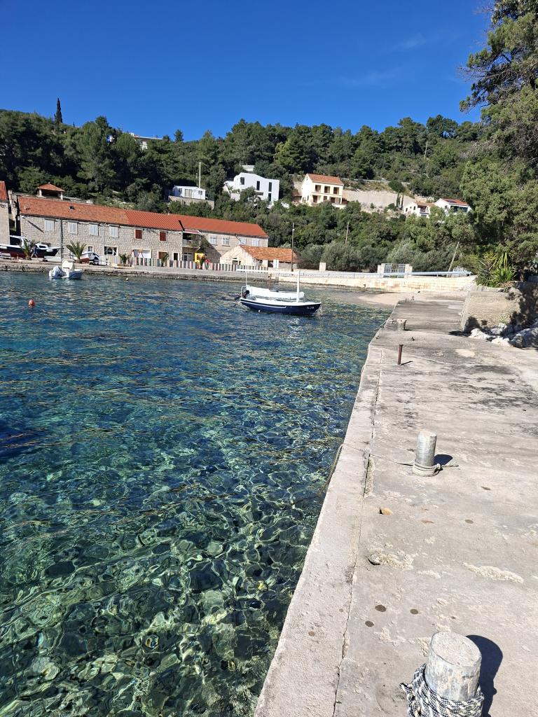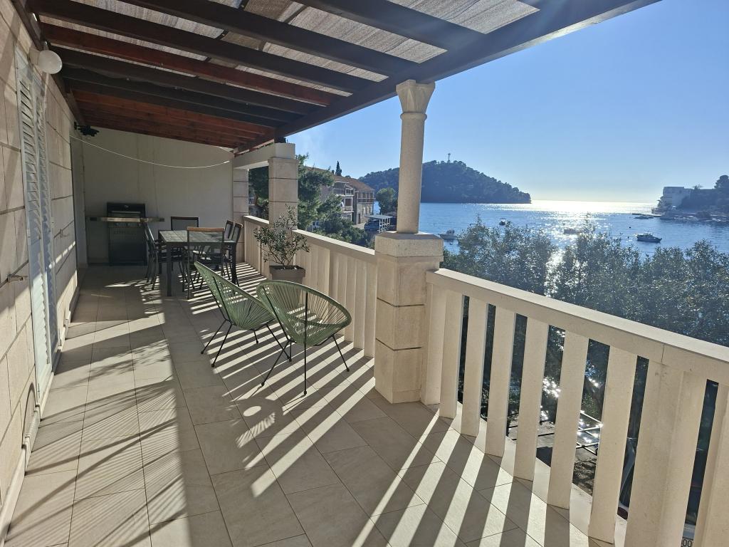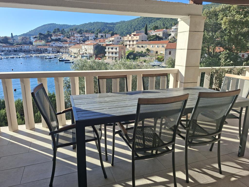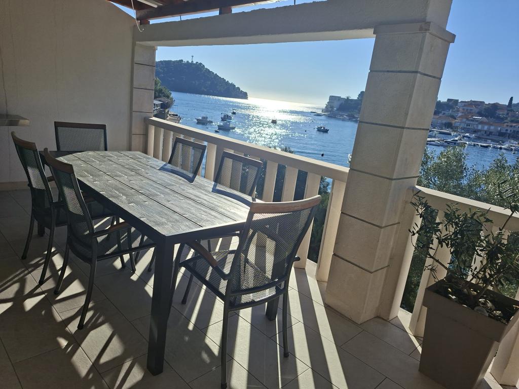 Helt og moderne indrettede lejligheder i den fredelige bugt Brna på sydsiden af øen Korcula. Anlægget er beliggende i centrum af byen, alt er lige ved hånden, butikker, restauranter, pizzeriaer. Huset ligger ved kysten, 6m som er ideel til familier med børn. På forsiden er en balkon med en smuk havudsigt, og på bagsiden af huset er der en stor gård ideel til børns lege.