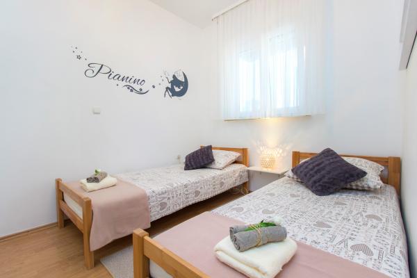 Moderne udstyret lejlighed på 100 m2 beliggende i Brodarica, en rolig landsby et par kilometer fra Sibenik. Apartment Piano ligger kun 40 meter fra stranden og har havudsigt. Den består af to soveværelser, badeværelse, toilet, fuldt udstyret køkken, rummelig stue og terrasse.
