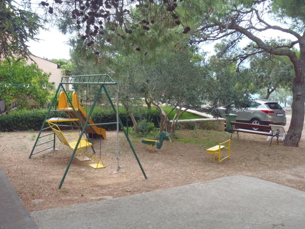 Huset med lejligheder og værelser ligger ved havet nær byen Šibenik. Vi tilbyder et område til solbadning i skoven foran huset, hvor der også er en legeplads. Parkering til biler. Brug af fitnesscenter.