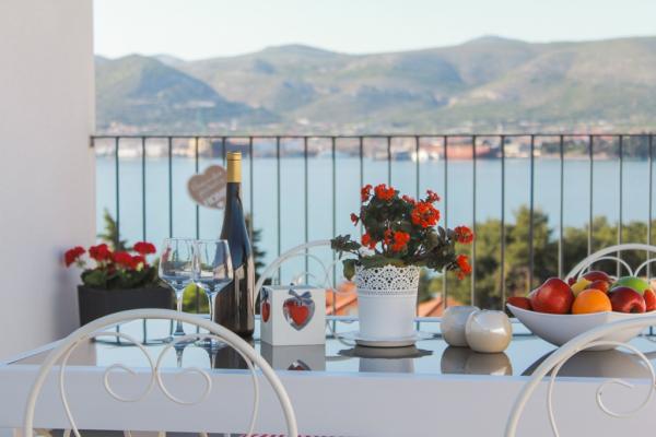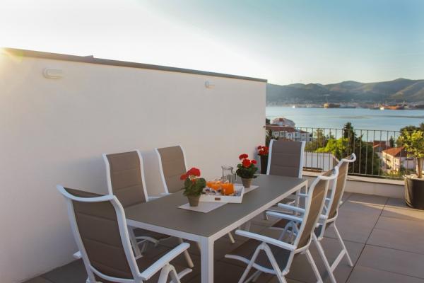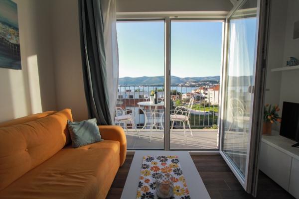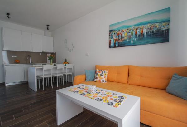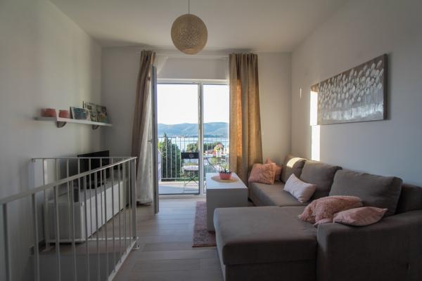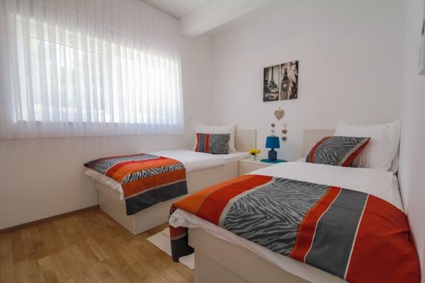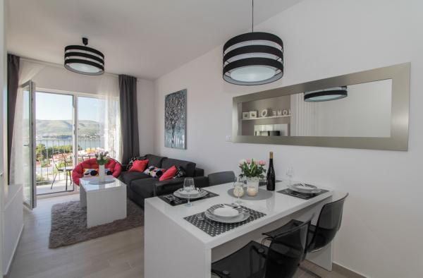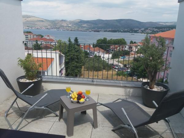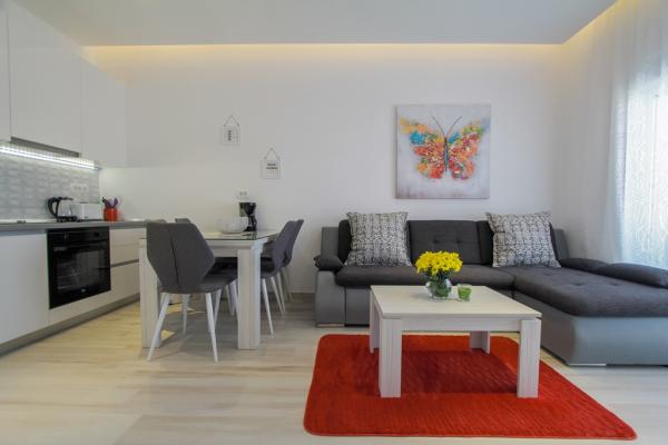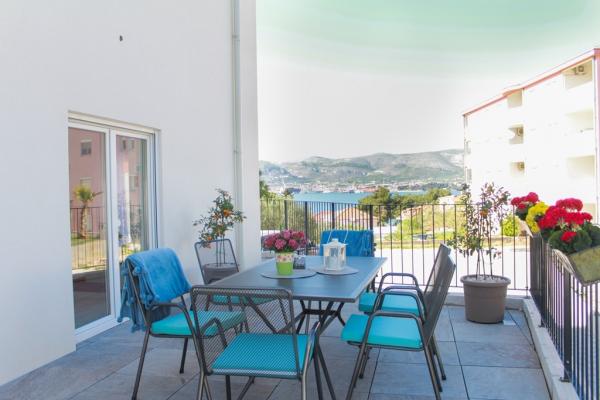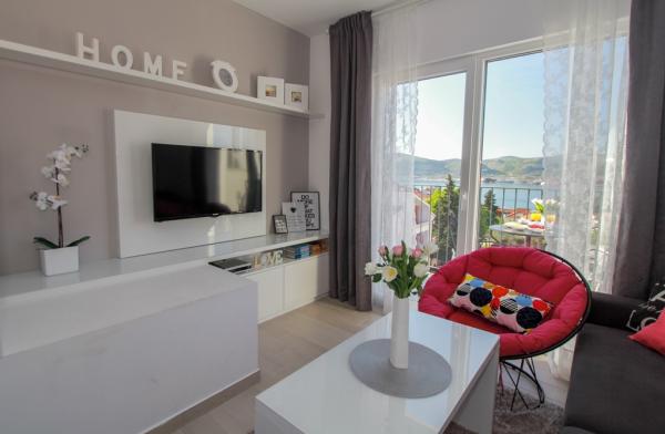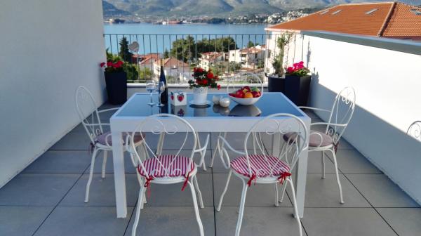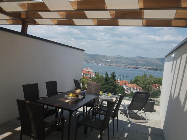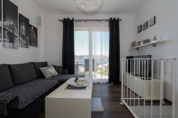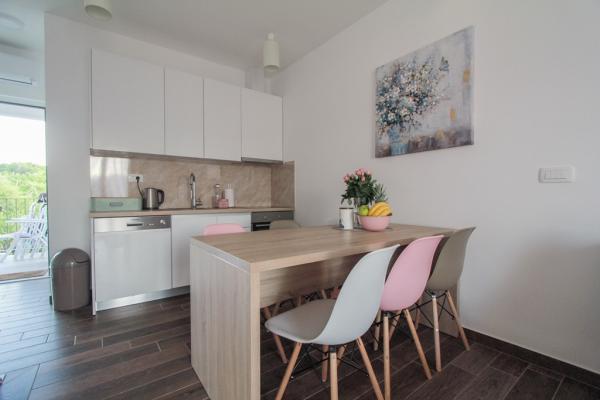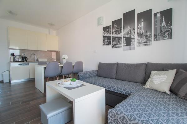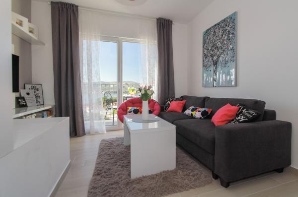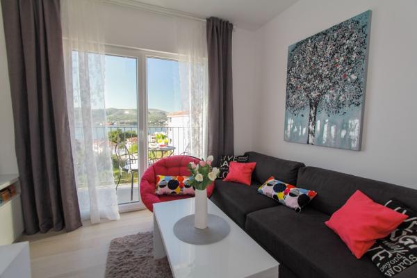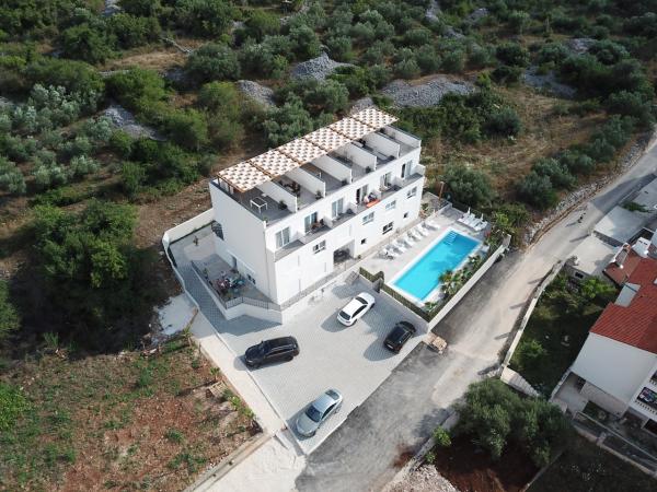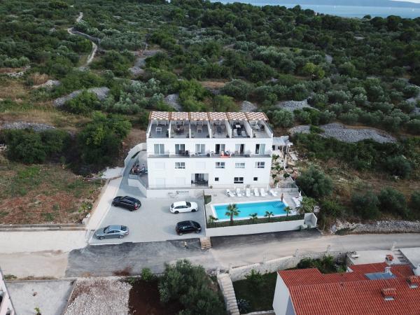Nye toværelseslejligheder er beliggende i en stille del af Okrug Gornji, kun 5 minutters gang til stranden i Okruška-bugten og 10 minutters gang til stranden i Tatinje. . Lejlighederne er moderne indrettet med fuldt udstyrede køkkener. De seks etages suiter har hver sin egen 25 m2 tagterrasse med en smuk havudsigt, og der er en grill og en siddeplads. To lejligheder i stueetagen har også en terrasse med havudsigt, grill og havemøbler.