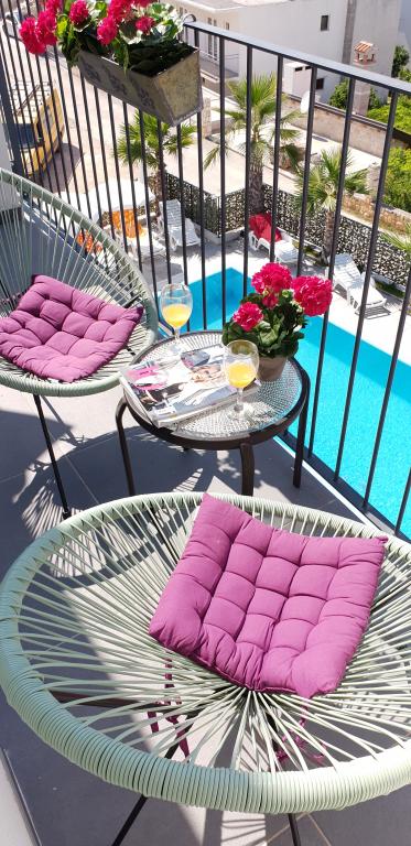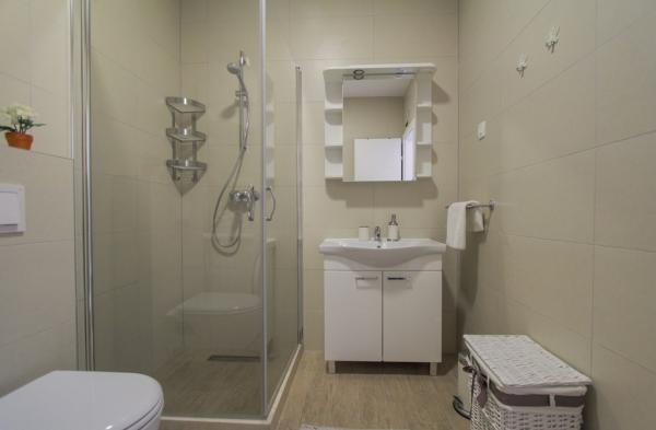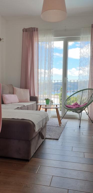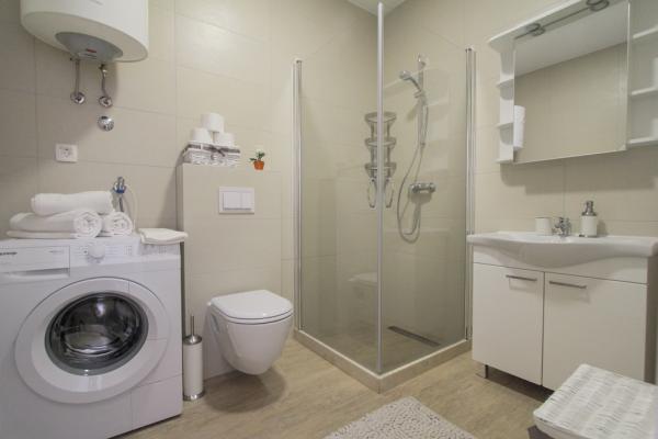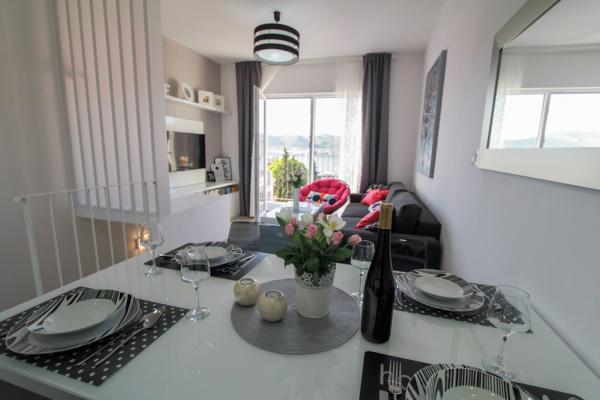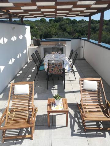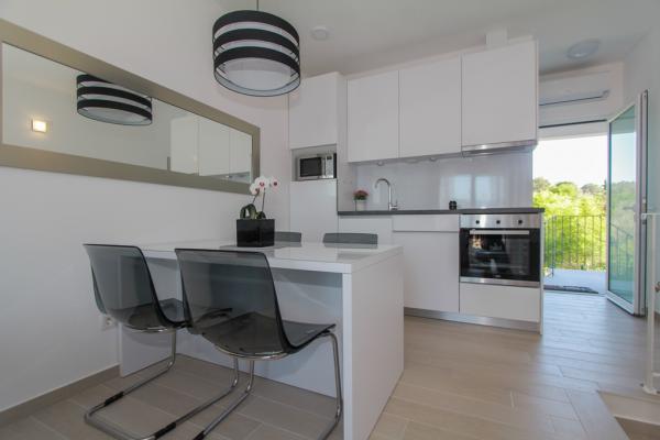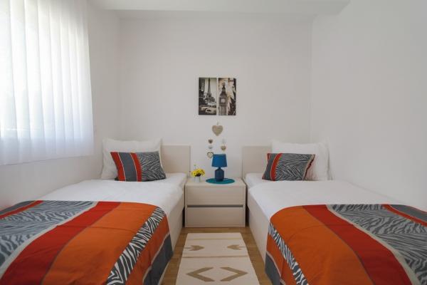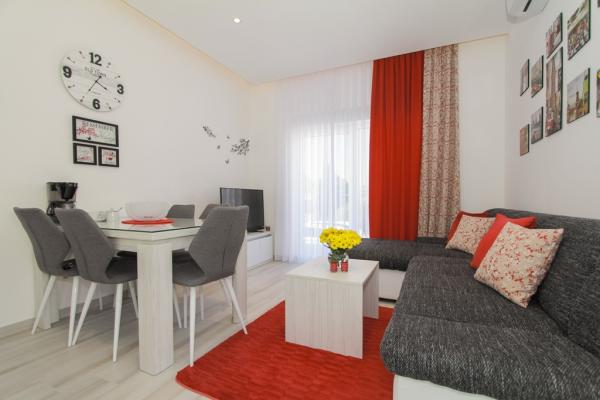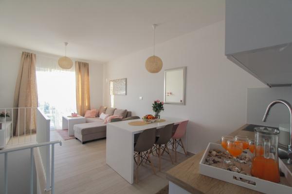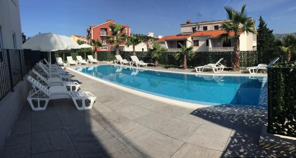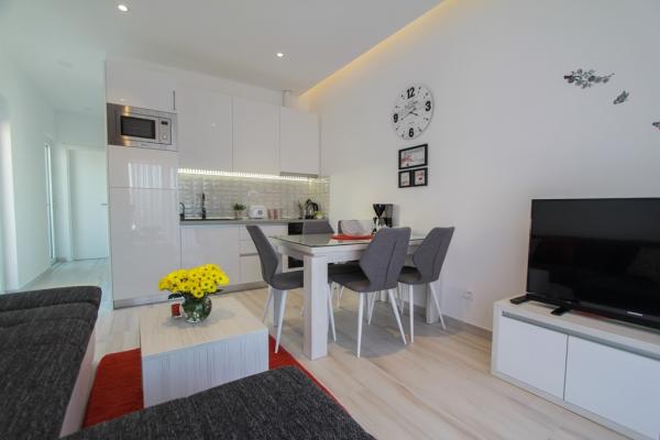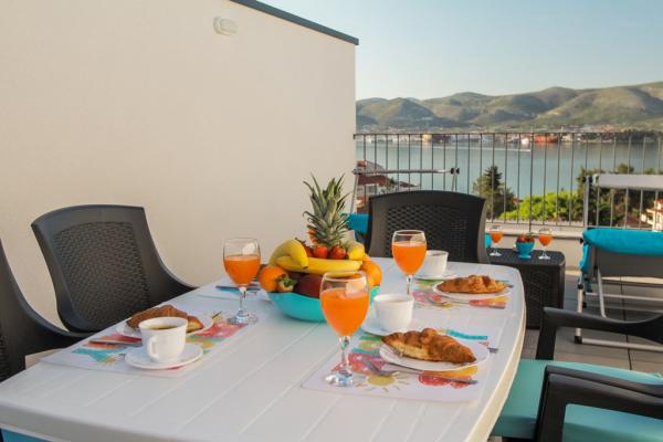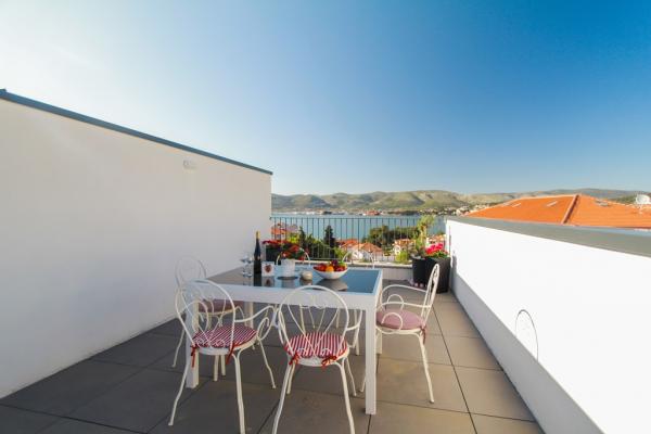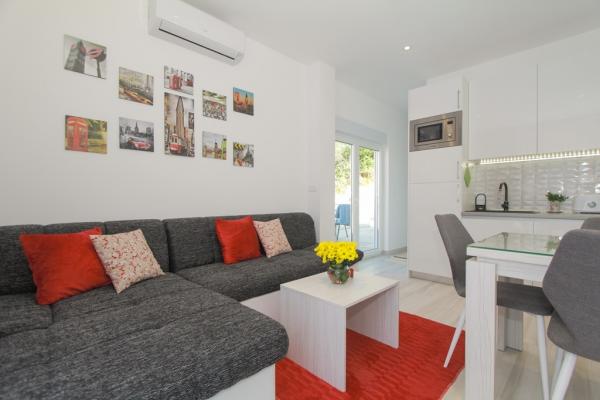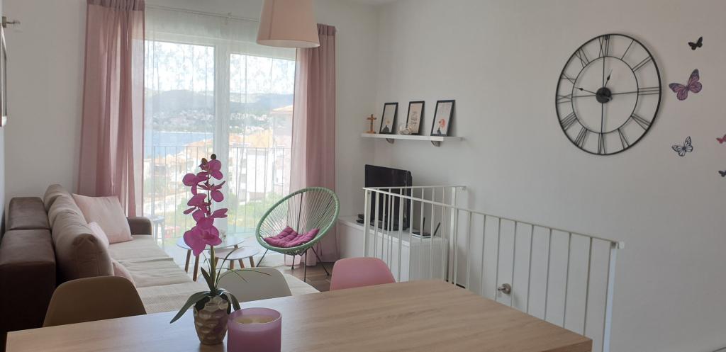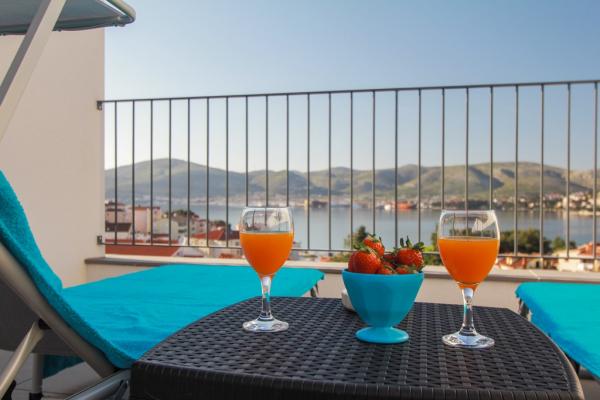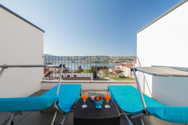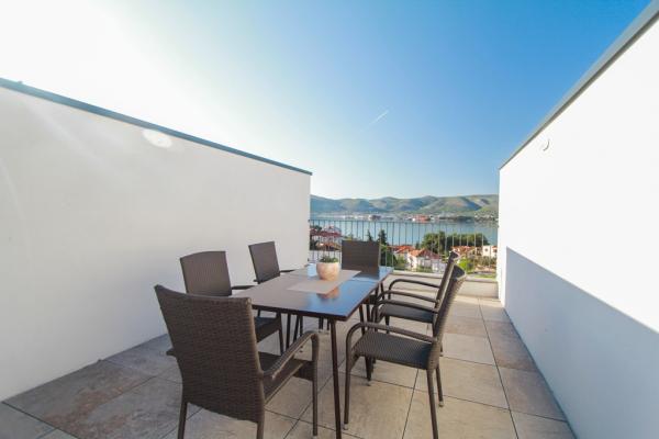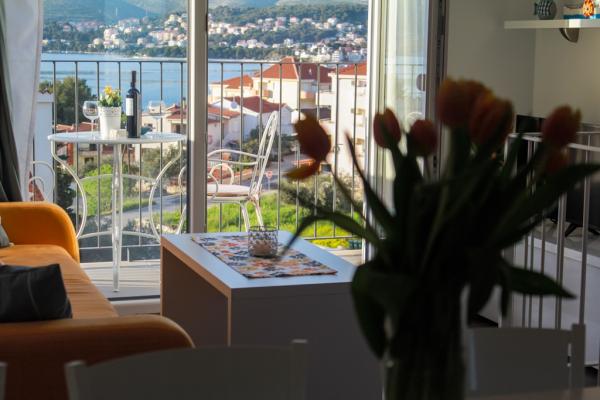Nye toværelseslejligheder er beliggende i en stille del af Okrug Gornji, kun 5 minutters gang til stranden i Okruška-bugten og 10 minutters gang til stranden i Tatinje. . Lejlighederne er moderne indrettet med fuldt udstyrede køkkener. De seks etages suiter har hver sin egen 25 m2 tagterrasse med en smuk havudsigt, og der er en grill og en siddeplads. To lejligheder i stueetagen har også en terrasse med havudsigt, grill og havemøbler.