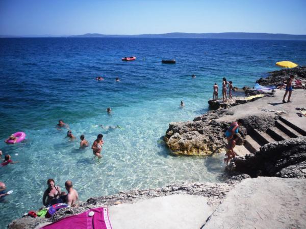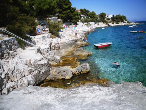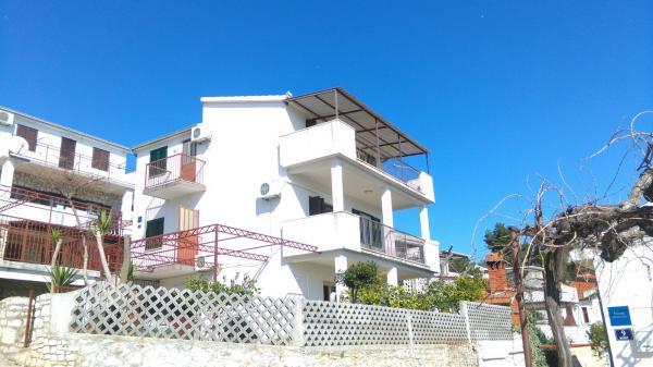 Lejlighederne ligger i en familie hus kun 15 m fra stranden i den rolige by Trogir på halvøen Ciovo kun 5 km fra Trogir og 10 km fra Split lufthavn. Ejendommen tilbyder 2 lejligheder med aircondition med en attraktiv udsigt over havet med egen balkon, gratis parkering og separate indgange. Fremragende position - anden række til havet på den sydlige side af Ciovo er omgivet af smukke strande og krystalklart hav oplyst af selv 2570 timer solskin om året. Apartments tilbyder også foruden gratis brug af flad wi-fi internet, aircondition og brug af udendørs bruser og udendørs pejs forhandles.