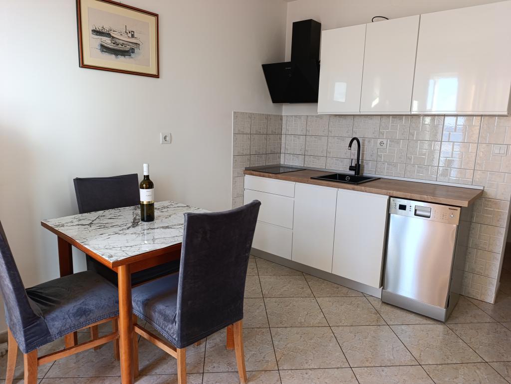 En dejlig lejlighed, ren, duftende og veludstyret, perfekt til 4-5 personer. Den består af 2 soveværelser, 2 badeværelser (hvilket giver stor komfort med et så stort antal mennesker, især en god mulighed for to ægtepar) og et køkken (ekstra soveplads) Udenfor en stor terrasse, hvor du kan spise et måltid i stilhed og slappe af. Den store fordel er det udendørs brusebad, hvor du kan skylle dig selv, når du kommer fra stranden. Området er meget roligt og stille. En god base for de nærliggende større byer. Stranden er meget tæt, ca. 50 meter. Ejerne af lejligheden - Marija og Ante, er meget søde og venlige værter, altid smilende. Jeg vil oprigtigt anbefale alle at bo på dette sted. Vi håber at komme tilbage til dig på ferie en dag. Tak for et dejligt ophold.