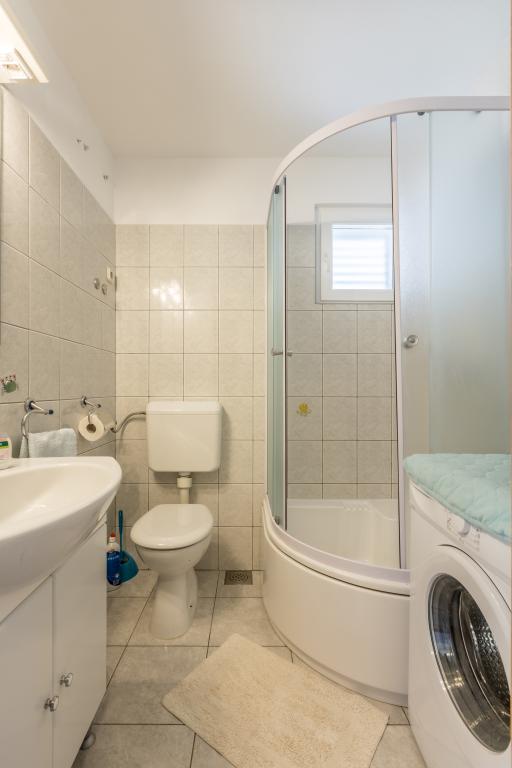 Fantastisk lejlighed til 4-5 gæster. Meget rent, pænt og duftende. Lejligheden har to badeværelser, hvilket øger opholdets komfort med flere personer. Der er også en vaskemaskine til eget brug. Der er en stor terrasse til din rådighed, som giver dig mulighed for at slappe af om eftermiddagen eller om aftenen. Strand (stenet - så du skal tage mindst måtter, men jeg foreslår dine egne liggestole) er ganske tæt, en 3 minutters gang fra boligen, der er steder og skyggefulde og i solen. På stranden er det muligt at leje et solseng - 30 kunas / dag / hver. og paraply 20 kunas / dag - priser fra 07.2019. Tæt på Trogir, Split, Klis, Krk - så du kan udforske meget og se meget i området. Værter meget venlige, venlige og altid smilende. Vi følte at vi var hos venner. Jeg anbefaler varmt dette sted og denne særlige indkvartering Vi vil helt sikkert komme tilbage her. Tak for et godt ophold!