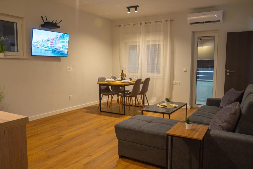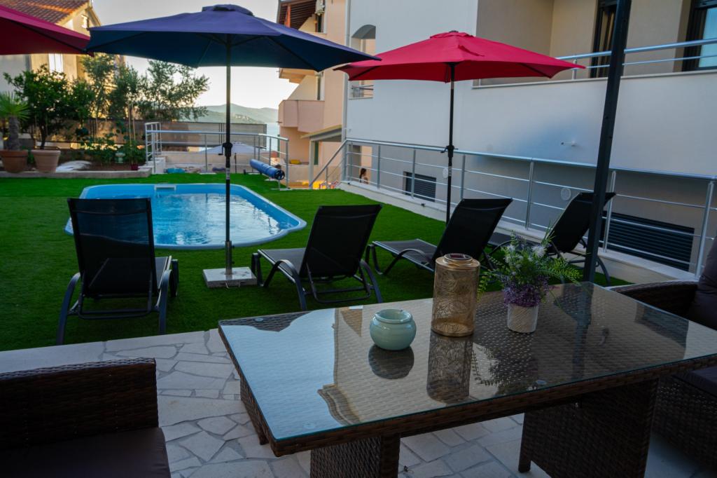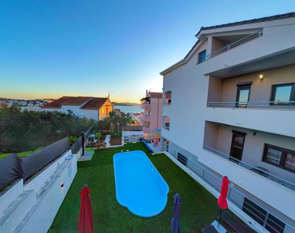 Velkommen til Apartments Neli, lejligheder beliggende på den charmerende ø Čiovo, som er forbundet med fastlandet med to broer. Kun 2,5 km fra den historiske by Trogir. Nyrenoveret bygning, fuldstændig renoveret i 2023. Luksuriøse, moderne nyindrettede lejligheder. Værelserne er komfortable og elegant indrettede, sengene er nye med ergonomiske madrasser. Køkkenerne er fuldt udstyrede med moderne apparater, alle har opvaskemaskine og alt hvad du behøver til madlavning. Der er vaskemaskine på hvert badeværelse. Hver lejlighed har en balkon med havudsigt til behagelig afslapning. Derudover er der en opvarmet pool, liggestole, et solbruser, en udendørs grill til at tilberede uforglemmelige delikatesser, privat parkering under videoovervågning. Stranden, restauranter og butikker ligger 200 meter væk, 7 minutters gang. Apartments Neli tilbyder dig alt til en behagelig ferie og uforglemmelige minder.