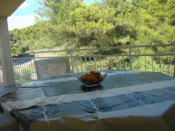 Lejlighederne ligger 400 m fra stranden i en rolig del af øen. Køkkenet er veludstyret, har en opvaskemaskine, køleskab, komfur med ovn og elkedel. Badeværelset har en vaskemaskine og et strygejern og strygebræt. Lejligheden har to terrasser, den ene med udsigt over havet og den anden med udsigt over skoven.