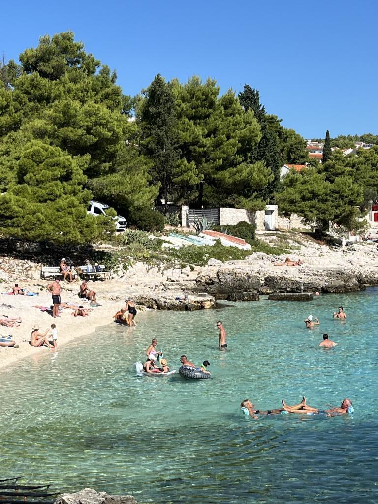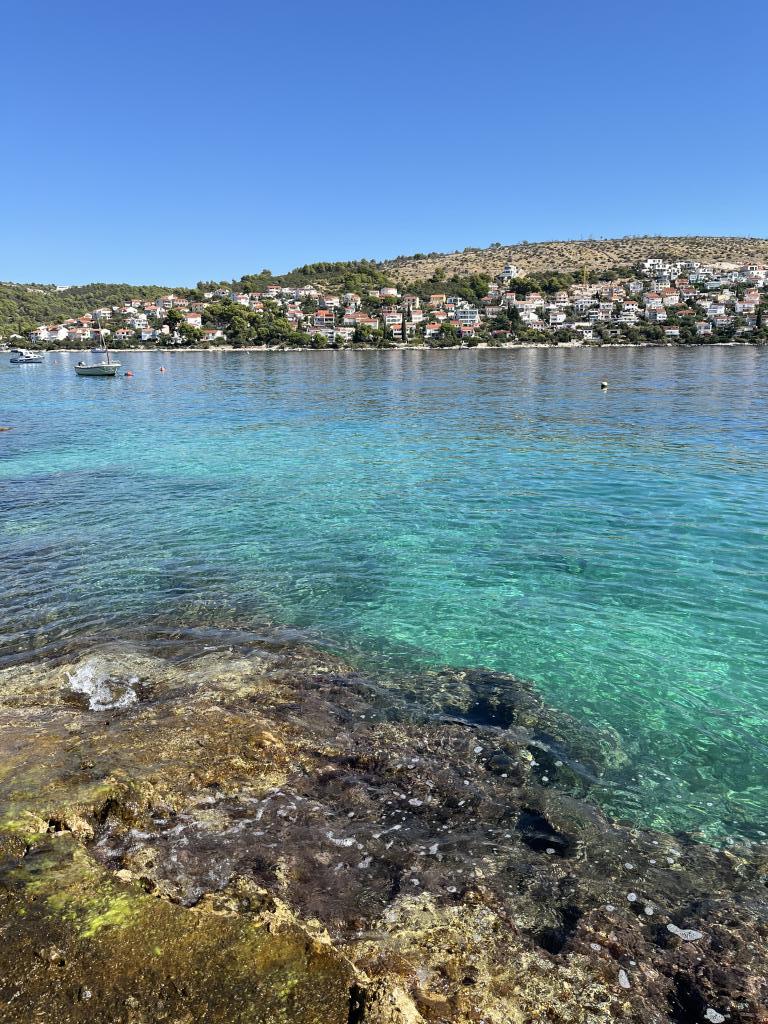 Morgenture langs et hav så blåt det gør ondt, morgenmad på balkonen med en magisk udsigt, moderne frisk lys med en dejlig gårdhave ved poolen, hvor vi spiste flere middage. Saltbade direkte under huset fra små saunaer/klipper. Dejlig stenstrand ca. 250 m fra huset, perfekt til mindre børn, lille sød købmand rundt om hjørnet. Ingen paxa-solsenge eller Eurodisco ved poolen, bare for at nyde. Fantastisk vært som hjælper med alt med stor tålmodighed, naboen har et taxaselskab og kørte os hvorhen vi ville, til/fra fly, udflugter til Trogir mv. Stærkt anbefale.