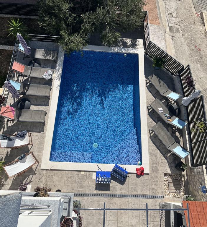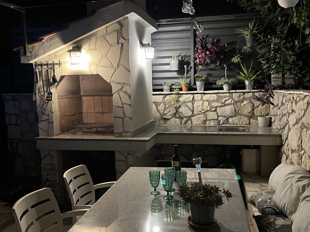 Vi lejede den øverste lejlighed, og vi kunne ikke være mere glade. Pladsen er ren og der er alt hvad du behøver. Udsigten fra terrassen er fantastisk!!! Der er et middagsbord og en lounge derude. En meget behagelig seng, opvaskemaskine, dejlig stor bruseniche og vaskemaskine gør din ferie nem. Poolen gør det meget behageligt, og i det haveområde er der også et brusebad, så du kan gå i bad, inden du går i poolen. 60 meter fra huset venter havet på dig, dejligt!!! Et minimarked er tæt på og flere caféer og gode restauranter. Gør dig selv en tjeneste og lej dette virkelig dejlige sted for en meget, meget god ferie. Darko og Niclas er de bedste værter, du kan ønske dig. De er opmærksomme, venlige og altid klar til at give dig gode tips om hvad du må og ikke må, når du er i Kroatien.