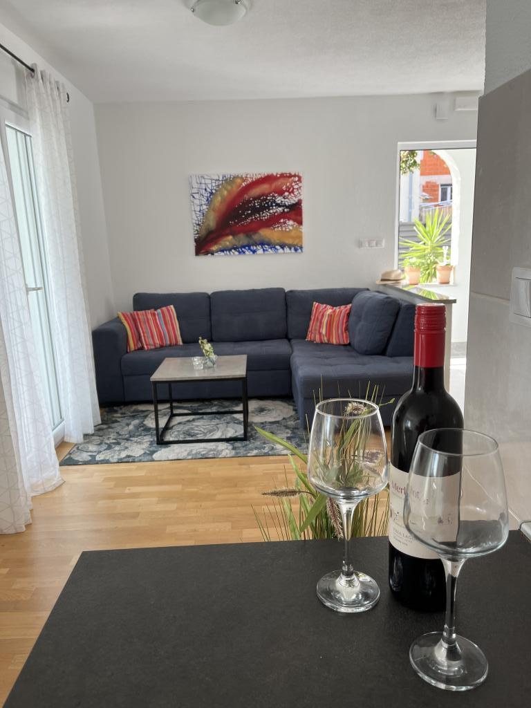 Ferie slutningen af juni og begyndelsen af juli 2023. Super sted på et roligt og fredeligt sted på øen Ciovo. Meget tæt på havet, gå til nærmeste butik ca.10 minutter. og ved høje temperaturer, det perfekte tidspunkt for en kold pifffko på vej. Værten, Darko, er meget åben, meget behagelig og altid hjælpsom. På stedet grill og swimmingpool, liggestole. Den høje standard af de fuldt udstyrede lejligheder - opvaskemaskine, mikroovn, kaffemaskine og endda en vaskemaskine på badeværelset. Jeg anbefaler på det varmeste dette sted.