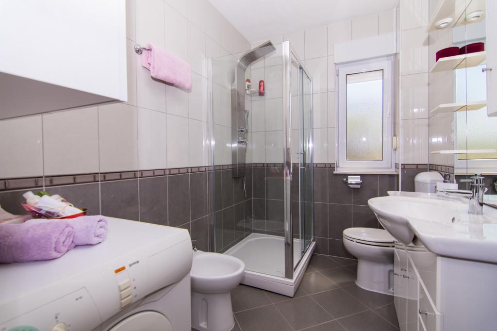 Apartments Villa Peky er moderne udstyret og har aircondition og ligger i et familiehus på øen Čiovo i Okrug Gornji. To A2 2 lejligheder og en 4 2 lejlighed kan huse op til 14 personer. Der er en parkeringsplads til gæster foran huset. På bagsiden af huset er der en opvarmet swimmingpool med jacuzzi, en legeplads og en overdækket udendørs grill med et stort bord. Den mest populære destination i Trogir-regionen er Okrug Gornji på øen Čiovo med dens smukke strand. Den gamle landsby Okrug ligger på toppen af en lille bakke, i bunden af hvilken er en fiskerihavn, omkring 4 km fra centrum af Trogir eller 8 km fra Split lufthavn. På stranden i Okrug Gornji kan du leje en scooter, jetski, du kan nyde parasailing og andre aktiviteter på havet. Om sommeren i Okrug kan du også nyde skyggen af caféer eller restauranter, der tilbyder dalmatiske specialiteter ud over andre retter. Dykkerskolen Trogir Diving Center i Mavarčica vil introducere dig til skønhederne i undersøen i det centrale Dalmatien.